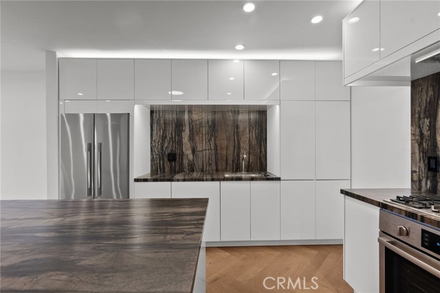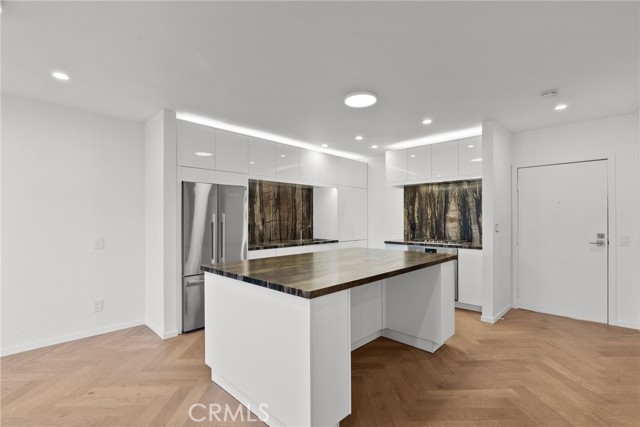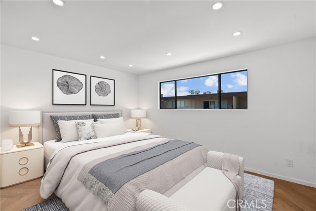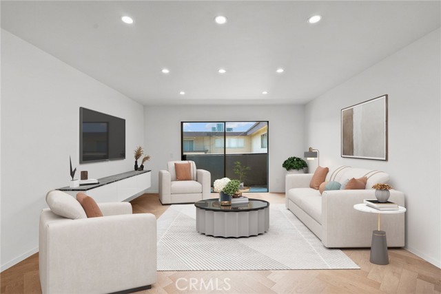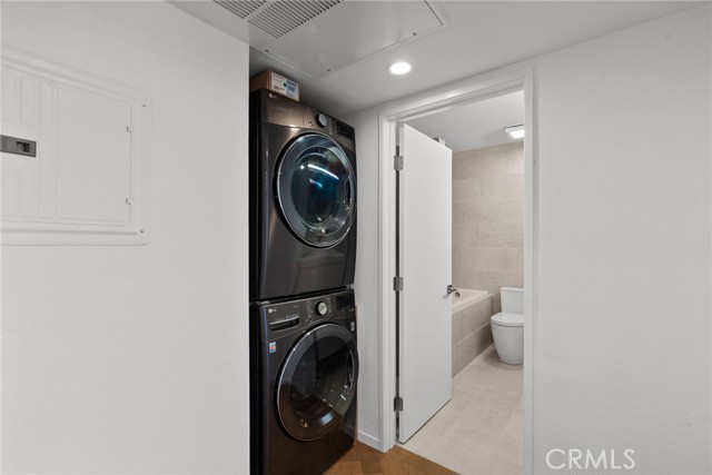 Remodeled Top-Floor 2-Bedroom Condo in Prime Glendale Location! The spacious 2-bed, 1-bath condo (1000 sq. ft.) has been beautifully redesigned and remodeled with high-end finishes. It is centrally located in one of Glendale’s most desirable neighborhoods—walking distance from The Americana at Brand, Brand Boulevard’s vibrant shops, Whole Foods, Erewhon (coming soon), cafes, restaurants, and easy freeway access. Light-Filled, Private, and Move-In Ready. Set on the top floor, looking onto the courtyard – it is an oasis of calm and serenity in an urban environment. The single-level home (accessible by elevator or stairs) is bathed in natural South light, filtering in through expansive sliding glass doors off the living room that open to a private balcony. Step inside to discover a modern, designer interior featuring: elegant herringbone Hickory wood floors, modern recessed lighting and controllers, fresh new paint, woodwork and hardware throughout. A fully remodeled kitchen with new soft-close cabinetry, leathered quartzite countertops, designer hardware, and high-end appliances including a Bosch gas range, panel-ready dishwasher, and Fisher & Paykel stainless steel refrigerator. Elegant Bathroom & Functional Comforts. The spacious luxurious bathroom with floor to ceiling tile is a retreat, boasting a soaking tub, separate standing shower, and floating vanity with mirrored cabinet and Delta fixtures. Enjoy year-round comfort with central air and heat, plus the convenience of an in-unit LG washer/dryer (included). The primary bedroom features a large double row walk-in closet with custom shelving for ample storage. Amenities & Convenience: One assigned parking space near the elevator (Parking Space #95), private storage box on the same floor as the unit, gated complex with controlled access, security cameras, pool, BBQ area, multiple elevators and entrance lobby. Low $400/month HOA includes water, insurance, and common area maintenance. A Rare Find in the Heart of Glendale. This beautifully updated condo offers you the opportunity for stylish, low-maintenance living in an unbeatable location. Don’t miss your chance to own this turnkey gem.