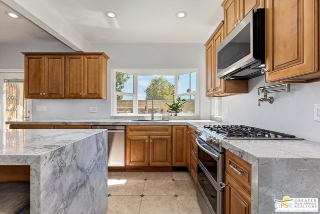 This stately Grand Dame is located in The Casa Verdugo Historic District, one of the finest neighborhoods in Glendale. Built in 1924 this spacious Mediterranean Revival home is situated on a sweeping corner lot with a commanding street presence that is sure to impress. Enter through the formal entry with italian marble tile flooring and you are greeted by a sweeping staircase, a grand living room with Batchelder tile fireplace and cove ceilings. The large formal dining room will accommodate your large gatherings. A bright and sunny breakfast room with hand tiled mosaic flooring is adjacent to the recently remodeled gourmet kitchen. The main floor features a powder room, a large primary suite with an updated bathroom and walk in closet, on the upper level you will find 3 spacious bedrooms and one large bath. Step out onto the terrace ovelooking the pool and spa along with a beautiful covered patio with a fireplace for outdoor entertaining. Other features include 2 detached permitted ADUs, each with a bath. The separate pool house with a half bath was originally permitted as chauffeurs quarters alongside the two car garage. These 2 extra spaces could provide steady rental income to offset your costs. The finished garage has a brand new epoxy floor. This home will be great for an extended family with a potential to be used as a six bedroom home or possible rental income. Other upgrades added to this classic Villa are almost too much to mention. Just of few of those include. Owned solar for low electric bills, Subzero appliances, solid wood maple cabintry, pasta pot filler, Brazilian Dolomite counters, electrical upgrades, Heated Italian marble floors, surround sound, new hardwood floors in living and dining room, recently resurfaced pool,crown mouldings custom chandelier surrounds, new flat roofs installed in 2024 and the list goes on... Don't miss out on your chance to own a magnificent classic 1920's character home in this prestigeous historic neighborhood. Bulit in 1924, upgraded with modern amenities yet retaining many historic features. High contributing property to Casa Verdugo Historic District. Recognized by City of Glendale as prime example of Mediterranean Revival style.