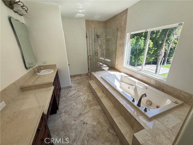 Granada Highlands sprawling 2 story home located on a cul-de-sac with mountain views. The interior of the property has been recently renovated and is in turn-key conditions with no HOA. This fantastic home features nearly 3,300 interior sqft with a nearly 31,000 sqft lot with a good portion of the lot flat. There are 5 bedrooms with an additional room in one of the 3 car garage spaces that can make this home 6 bedrooms. The property lies in a tucked away neighborhood above Rinaldi St, and is a short distance from the freeway and all local conveniences. The home has a grand entryway with a long hallway that connects the large living room with 2 story ceilings, a good sized dining room, a huge family room with fireplace, and a wonderful chefs kitchen with a breakfast bar. Upstairs there is a large loft, a very large and long primary bedroom with a huge walk-in closet and primary bathroom with dual sinks, a jetted tub, separate walk in shower, and private fireplace. The additional 3 upstairs bedrooms are all good sizes with a large full bathroom in between that has been fully updated. Downstairs there is a large bedroom with a full bath off a small hallway that leads to the garage that has a separate entrance thru the garage that can be portioned off the main home as a possible guest unit or for additional family that want their privacy. The rear yard has large hedges on both sides for privacy with a large pool and spa for hot summer days and is all perfect for entertaining and relaxing in your private oasis. The property is located on a cul-de-sac with 4 homes only on one side of the street. There is plenty of parking on the driveway and on the street with a large area to the left of the property that can be set up for RV access, additional vehicles or more yard space. Come and see this fantastic home!