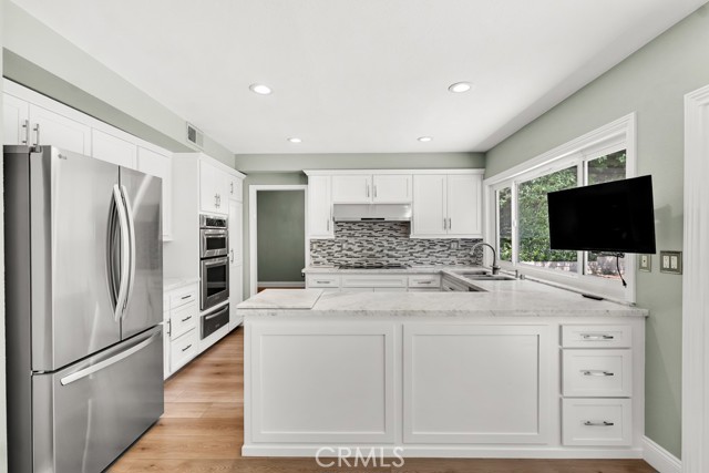 Designed for effortless entertaining, this tastefully updated Buckingham Estates jewel combines elegance, function, and modern comfort. An inviting tri-level layout features open living and dining spaces centered around a striking stone fireplace. The chef’s kitchen is equipped with a KitchenAid convection oven/microwave, KitchenAid warming drawer, GE cooktop, and Bosch dishwasher surrounded by Carrara Marble counters—perfect for hosting or everyday meals. A convenient downstairs bedroom and full bath with Carrara marble vanity and direct garage access are ideal for guests or extended family. Upstairs, the spacious primary suite includes a sitting area and a renovated, spa-inspired bath with premium finishes. Additional updates include new windows, SPC wide-plank flooring, fresh interior and exterior paint, updated roof, copper plumbing, replaced sewer line, and paid-off solar for lower utility costs. The terraced two-level backyard invites gatherings with multiple patios, a Carrara marble-topped serving ledge, raised garden beds, and generous space for a future pool. Pre-inspected for buyer confidence; report available.