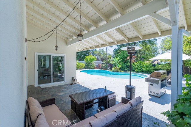 Latest update: A new tankless water heater has been installed on the property. Tastefully remodeled gem in the heart of Granada Hills, this 3-bedroom, 2-bathroom home offers 1,833 sq. ft. of bright, open living space on an inviting 8,510 sq. ft. lot. The modern kitchen showcases sleek cabinetry, updated appliances including a 36-inch 6-burner stove, copper kitchen plumbing, and a seamless flow into sun-filled dining and living areas framed by recently replaced windows. The spacious primary suite features a private en-suite bath, while the additional bedrooms provide comfort and flexibility for family, guests, or a home office. Notable upgrades include a brand-new AC system (2024), new electrical panel, permitted earthquake retrofit, and an automatic sprinkler system for easy maintenance. Step outside to a backyard with a sparkling pool (new pool pump 2024), landscaping, and a covered patio with a BBQ area—perfect for entertaining or unwinding in style. Located within the boundaries of top-rated schools and just minutes from parks, shopping, dining, and easy freeway access to the 118 and 405, this home offers the perfect blend of comfort, style, and convenience.