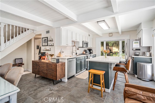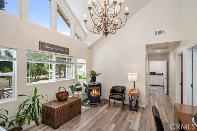 Stunning Green Valley retreat on a quiet looped street with beautiful views! This unique property sits on four parcels totaling almost one-half acre, with the main home and guest home situated on two, and two additional parcels large enough for a future shop or expansion. Both residences have been professionally remodeled, the main home in 2007 and the guest home in 2005, with further upgrades completed in 2021 and 2023, including a beautiful new wrap-around deck and fresh exterior paint. Both homes feature newer roofs, water heaters, dual-pane windows with custom tinting, and HVAC systems for year-round comfort, along with cozy pellet stoves for added warmth and charm. The main home showcases tile flooring, tongue-and-groove ceilings, and ceiling fans, with a well-designed kitchen that offers a bay window, quartz countertops, center island, and stainless steel appliances including a 5-burner gas range, microwave, refrigerator, and dishwasher. A downstairs bedroom and full bath provide convenience, while the upstairs offers a vaulted ceiling bedroom and family room. Additional features include an indoor laundry room with storage. The spacious guest home includes two bedrooms and a full bath, a large living room, and a versatile dining, office, or game room with vaulted ceiling and elegant chandelier. The kitchen is nicely appointed with an oversized pantry and laundry area, while vinyl plank flooring and carpeted bedrooms add comfort. The guest house is equipped with central heating and air, an additional AC unit in the living room, a pellet stove, and even a full attic storage area. The grounds are equally impressive, with mature trees, RV parking, four storage sheds including one Tuff® Shed with built-in shelving, and a professionally installed gazebo, creating a private retreat perfect for entertaining or relaxing. With space for multi-generational living, rental potential, or simply a serene escape with room to grow, this property is truly one of a kind.