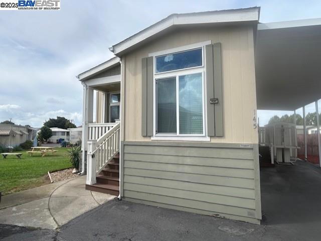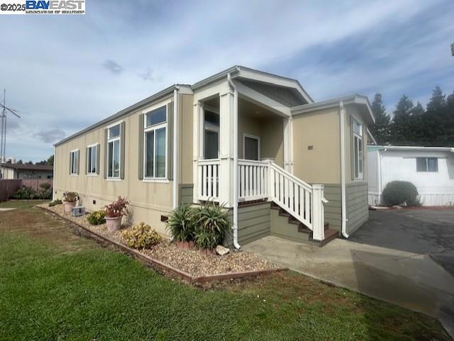 Newer manufactured home ready for move in located in Hayward Mobile County Club (adult community). This lovely home features: 2 bedrooms and den area; 2 full baths; kitchen with stainless steal appliances and granite countertops; primary suite with private bath and walk in closet; laminate flooring in living room, dining room, and hall; crown molding throughout; indoor laundry room with washer and dryer included; custom shed; quite cul-de-sac location over looking green belt. Fireplaces: NO