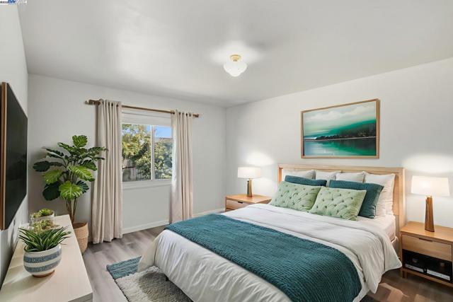 Welcome Home For The Holidays! This beautifully updated 3-bedroom, 1.5-bath home offers 1,182 sf of stylish living space on a 5,000 sf lot, right on the San Lorenzo border. Step inside to discover brand-new laminate flooring throughout and a fully remodeled kitchen featuring brand new appliances, under-cabinet lighting, pendant lighting over a spacious open-concept island, and modern finishes. The bathroom has also been completely renovated with a fresh, contemporary design. Outside, the home boasts fresh exterior paint, a landscaped front yard with a mature lemon tree, blooming rose bushes, and a 2-car garage. The fenced backyard includes multiple fruit trees and a covered patio perfect for relaxing or entertaining with convenient access through the rear garage door. Conveniently located to nearby restaurants, the new Via Toledo Park, schools and easy access to freeway 880. Don't miss this move-in ready gem!