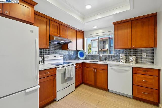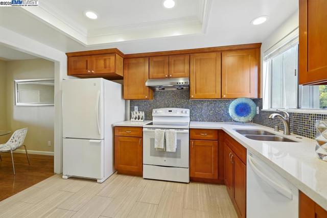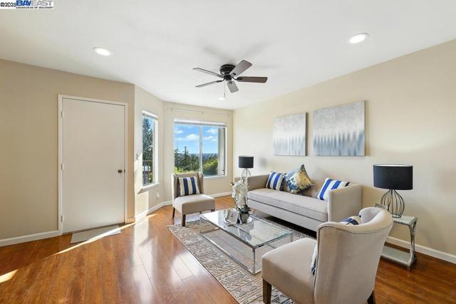 This quaint 2-bedroom, 1.5-bathroom townhouse-style condo offers a fantastic blend of comfort and convenience. Enjoy the benefits of an attached garage with in-unit laundry and an additional reserved parking spot within the gated community. The updated kitchen boasts sleek quartz countertops, shaker-style wood cabinets, and new flooring, making it a perfect space for cooking and entertaining. The cozy living room features a fireplace and provides access to a private outdoor balcony, ideal for relaxing. Beautiful hardwood floors and a fully repainted interior give the home a fresh, inviting feel. The master bathroom has been thoughtfully updated with newer cabinets and quartz counters, adding a modern touch. The condo is in immaculate condition and ready for a new owner to move in immediately. Located close to the 580/880 freeways, BART, and shopping along Castro Valley Blvd and Mission Blvd, this home offers easy access to all the essentials. Don't miss out on this turnkey opportunity in a highly desirable location!