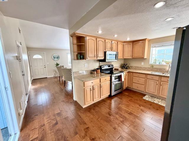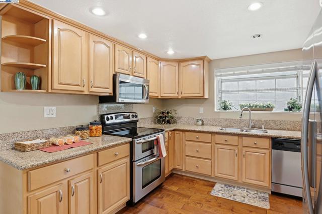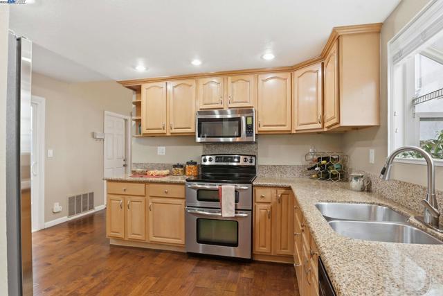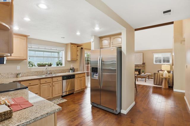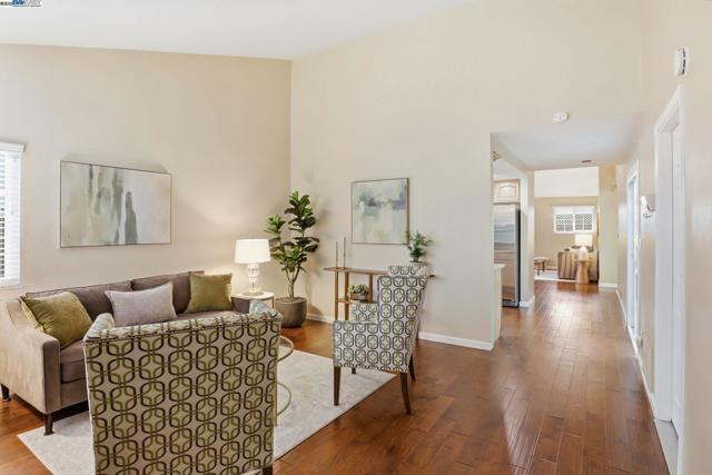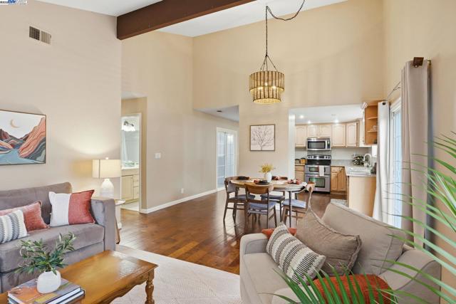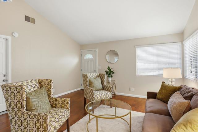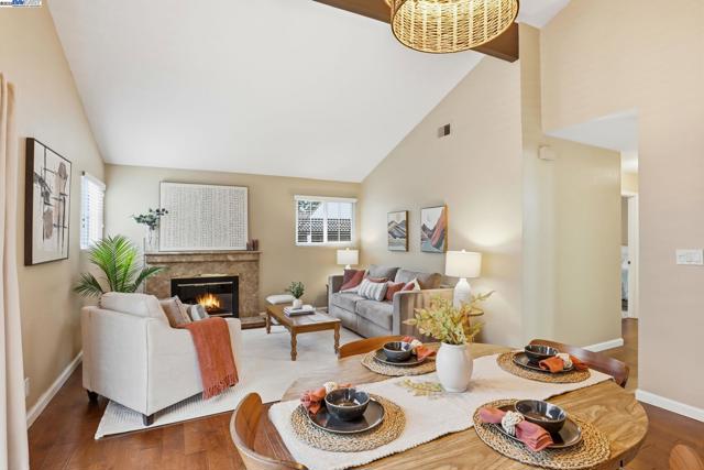 Turn the key and WOW there's nothing left to do but move in and start enjoying this beautiful single level home in a low traffic location close to everything:12 years of schools, strategic to all Bay Area commutes/BART, great shopping and restaurants, plus the location is just North of the core of Silicon Valley. High vaulted ceilings give this home a spacious feeling as well as the beautiful cherrywood-finished wood floors in main living areas. Enter the expansive living room that flows into the kitchen-dining-family room areas featuring an elegant custom marble fireplace and a slider out to the backyard. The remodeled kitchen has granite counters and rich wood cabinets, sunny greenhouse window, smooth top electric range, stainless steel appliances. A unique design feature is the interior courtyard accessed from the kitchen and the primary bedroom suite offering extra space for crafts or storage. Both bathrooms are sparkling fresh with nicely updated tiled showers. Double garage with insulated roll-up automatic door, attic storage, includes Samsung washer and dryer. The low maintenance backyard is designed for easy entertaining with pavers, fruit trees, outdoor dining area and a cute double swing. The roof was recently replaced. Home,pest,roof inspections available to review.
