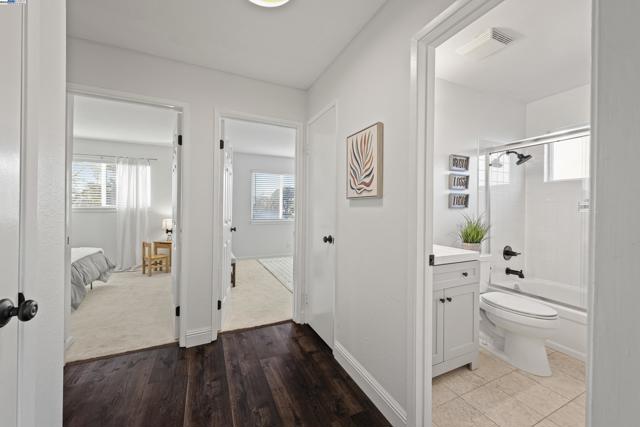 Tucked away in the Hayward Hills, this stylish townhome blends comfort, convenience, and modern upgrades. Step inside to find newly installed modern flooring throughout. The bright, open living space with expansive windows frames the breathtaking views of the regionally protected Greenbelt trails. The recently remodeled kitchen features sleek countertops, updated cabinetry, and modern appliances. Upstairs, the spacious primary suite offers a relaxing retreat with a luxuriously remodeled bathroom (2025), complete with contemporary finishes and a spa-like atmosphere. The unfinished basement in this property offers instant equity potential! Finish to add square footage and value to the home. This one won't last!