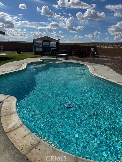 Spacious Cul-de-Sac Retreat with Resort-Style Amenities Nestled at the end of a quiet cul-de-sac, this expansive residence offers just under 3000 sq ft of flexible living space. With 3 spacious bedrooms and 2 full baths, plus bonus areas that can easily convert into a 4th and even 5th bedroom, the layout is ideal for families, remote professionals, or multi-generational living. Step outside to a private backyard designed for entertaining and unwinding. Enjoy a sparkling in-ground pool and spa, a regulation-size horseshoe pit, an enclosed gazebo sitting area, all fully enclosed by a 4'-5' block wall with solar lighting-perfect for pets, gatherings, and serene evenings under the stars. If off-roading is your fun, you are just steps away from desert access for outdoor recreational fun. Beyond the property, the HOA delivers an impressive suite of amenities: unlimited golf, a community pool and spa, tennis courts, pickleball, equestrian stables, 2 lakes for water fun and more. Whether you're seeking active recreational or peaceful retreat, this home offers the best of both worlds. Inside the open-concept design flows effortlessly between living, dining, and kitchen spaces, with abundant natural light and room to personalize. With lifestyle, location, and leisure all in one, this home is a rare opportunity to live expansively!