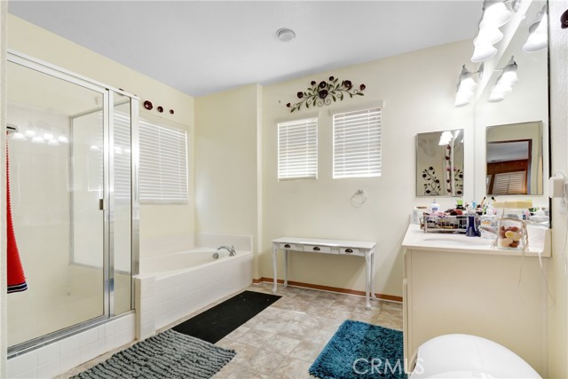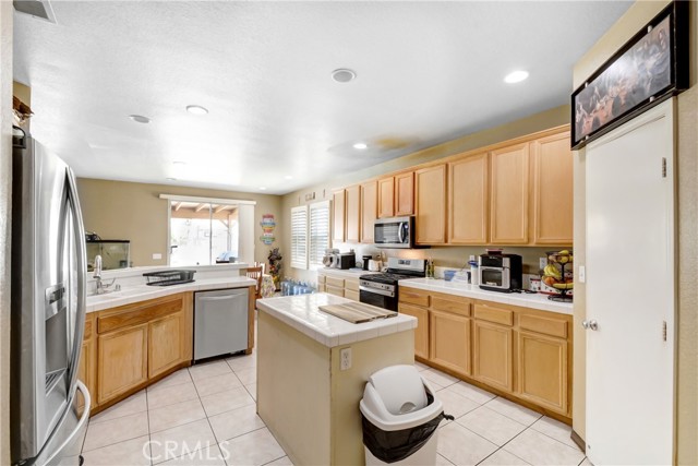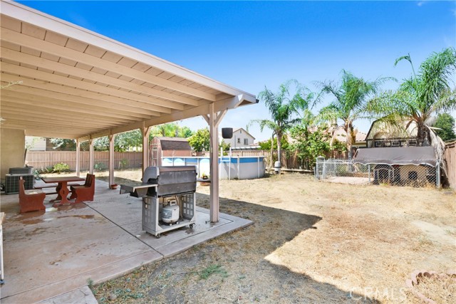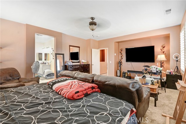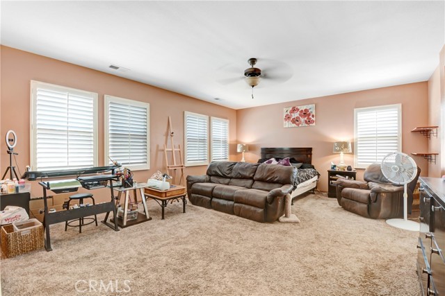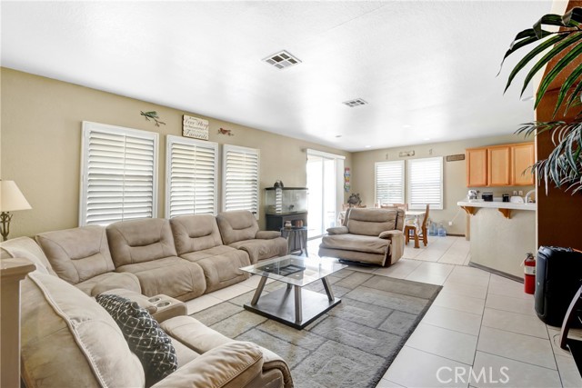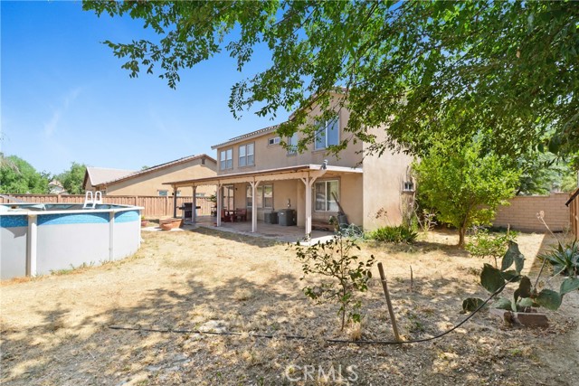 BIG PRICE REDUCTION! NO HOA. Attractive 5 bedroom 3.5 bath home in a popular west-end area of Hemet. Solar Panels to be PAID through escrow, Over 3000 sq ft of living space and a park-sized yard. Everything about this home is L A R G E! The neutral colors throughout this home allow your design touches to dictate the ambience of your new home. The family room has a recessed wall that will allow unobtrusive placement of your entertainment center and will accommodate sectional furniture. The kitchen has a breakfast bar that will easily accommodate seating for 4 and is also part of the family room. There is an informal dining space off the kitchen, as well as a formal dining and pantry. Upstairs is a loft with adequate space for the whole family to enjoy, with a computer center. The master bath has a separate shower and tub. Covered full-length patio with an enclosed dog area. Oh, and a dog park nearby for your furry friend. There are two bedrooms downstairs and three upstairs. Perfect for accommodating a large or extended family. Ranco Viejo Middle School is at the end of the block and Tahquitz High is down Cawston Ave. Minutes from shopping and ez access to highways for out-of-town commuters.