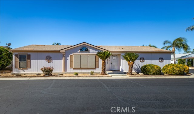 This 3 bedroom/2 bathroom home located in the desired senior gated community of Foothills of Hemet also has a permitted room off of the kitchen so there's lots of square footage. Large living room w/high ceilings opens up to the dining area and kitchen that has an island lots of cabinets & newer appliances. Primary bedroom is on one side of the home providing lots of privacy. The light & bright bathroom has double sinks, soaking tub & separate shower. Walk-in closet can be accessed from either the bedroom or the bathroom. The two guest bedrooms & a bathroom are at the other end. From the large additional room that would be be great for entertaining. From there you have direct access to the two-car garage and also the nice little covered patio. Roof is a couple years old, and the HVAC & water heater are only a few years older than that. The park is clean, quiet, gated and just plain awesome with amenities including 2 swimming pools, spa, pickleball courts, air-conditioned shuffle board court, exercise room, recreation hall w/kitchen, and rooms to enjoy billiards, cards, bingo, crafts & fun planned dinners or activities. Ask about the park's RV parking area. Commuter friendly, and close to shopping & restaurants.