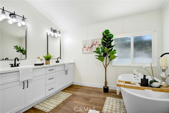 Welcome to 1730 San Simeon Dr, a one-of-a-kind triple-wide manufactured home on owned land in the highly desirable 55+ Sierra Dawn Estates of Hemet, CA. This rare property is fully remodeled from top to bottom and features the true luxury of an attached 2-car garage, something almost never found at this price point. 433A certified and eligible for Conventional, FHA, and VA financing, with no space rent and a low $168 per month HOA that includes access to multiple pools, spas, dog parks, and several clubhouses. Step inside to discover wide-open living spaces with vaulted ceilings, brand-new luxury vinyl plank flooring, and a cozy wood-burning fireplace. French doors brighten the home with natural light, creating an airy and inviting feel throughout. The chef’s kitchen offers all-new soft-close shaker cabinets, quartz countertops, stainless steel appliances, and a layout that opens to a second living area ideal for entertaining or relaxing. The formal dining room includes a built-in buffet with mirrored shelving for added style and storage. The primary suite is designed as a true retreat with a freestanding soaking tub, dual vanities, and a custom walk-in shower. An oversized laundry room includes new cabinetry, a quartz folding counter, and a utility sink. A bonus sitting area features picture windows that frame beautiful mountain views, perfect for morning coffee or quiet reading. The attached 2-car garage adds secure parking and extra storage, making this home as functional as it is stylish. Every detail has been thoughtfully updated to blend comfort, convenience, and modern design. Sierra Dawn Estates is one of Hemet’s most established 55+ communities, known for its active lifestyle, affordable amenities, and central location close to shopping, dining, and medical centers. Homes like this—remodeled, triple-wide, on owned land, and with a two-car garage—rarely come on the market. Don’t miss this move-in ready gem offering the perfect combination of affordability, elegance, and resort-style living.