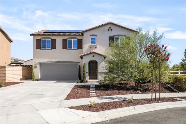 This beautifully upgraded 4 bedroom, 3 bath home is an absolute gem in cul-de-sac with HUGE driveway big enough to fit 4 cars! Featuring PAID OFF SOLAR for energy savings and brand new luxury vinyl plank flooring throughout, this home offers the perfect blend of modern style and everyday comfort. Built in 2022, the spacious open concept layout is ideal for entertaining, with a gourmet kitchen showcasing quartz countertops, stainless steel appliances, a large island, and a generous walk in pantry. Need a guest space? You’ll love the downstairs bedroom and full bathroom, perfect for visitors or multi generational living. If you have guests or family coming into town, the downstairs bedroom and full bathroom offer the perfect private space for them to rest and relax or, if you work from home, this area can easily be used as a quiet home office or flexible workspace. Upstairs offers even more living space with a large loft that's perfect as a game room, home office, or lounge! A spacious full laundry room upstairs adds everyday convenience, while the luxurious primary suite offers a relaxing retreat with a large walk in closet, dual sinks, a soaking tub, and a separate walk in shower. Outside, the HUGE backyard offers endless potential create your dream outdoor oasis! The 2 car garage includes EV charging outlet which is perfect for road trips and daily driving without the hassle of public charging stations! This home is located in a cul-de-sac in the highly desirable Saddle Point community with resort style amenities like a pool, clubhouse, playground, and walking trails, all with a low HOA. Minutes from Menifee shopping, Diamond Valley Lake, and just a short drive to Temecula Wine Country. This home is immaculate, energy efficient, and truly move in ready, but you need to see it in person to appreciate how special it really is! Schedule your tour today! *PENDING CANCELATION OF CURRENT ESCROW*