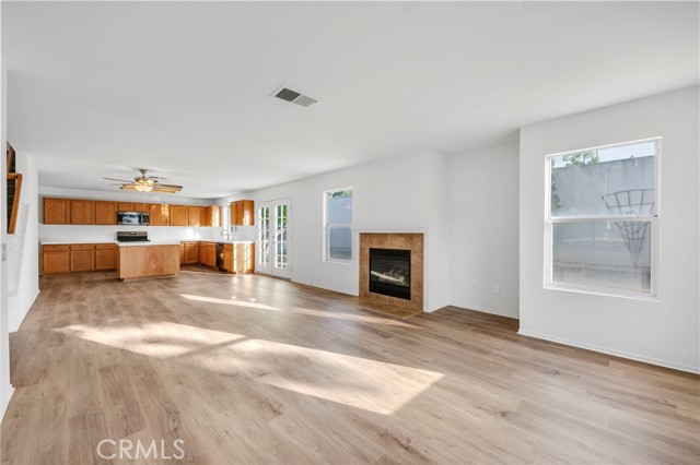 Step inside and fall in love with this light-filled, newly updated two-story home in the heart of West Hemet! Offering 3 bedrooms plus a spacious loft and 2.5 baths, this move-in-ready beauty features brand new LVP flooring throughout the main level, new carpet in all bedrooms, and fresh paint inside and out. The open-concept layout includes a large kitchen with ample cabinetry, a center island, and direct access to the backyard—perfect for entertaining. The family room features a cozy fireplace and tons of natural light. Upstairs, you’ll find a generous loft ideal for a game room, home office, or second living space. The primary suite offers dual sinks, a soaking tub, separate shower, and walk-in closet. Enjoy the newly landscaped front yard and a large, pool-sized backyard ready for your creative touch. Conveniently located near parks, schools, and shopping, with low taxes and no HOA—this Hemet gem has it all!