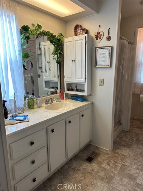 Like gardening? Enjoy California living? This single story manufactured home has a cute country feel with painted cabinets and more. Covered patios on both sides with ample room for a garden and outdoor living. Ceiling fans and an oversized dining/family room area. This home also has a flex room which could be an office or breakfast nook with a built-in cabinet.