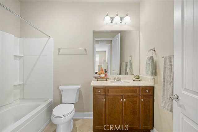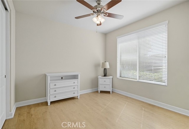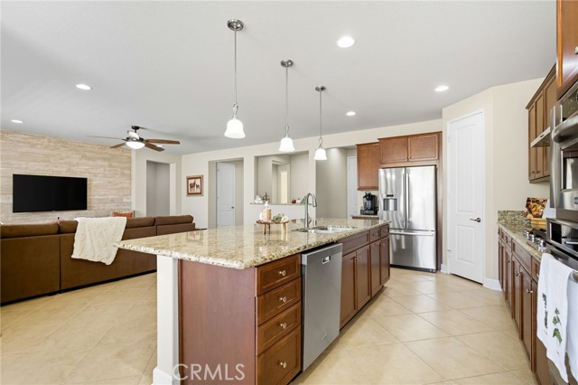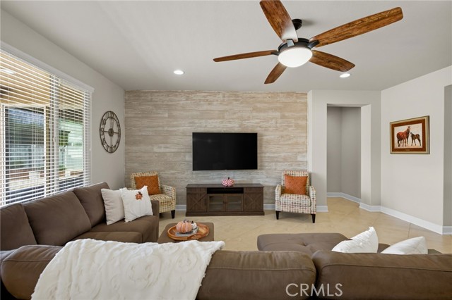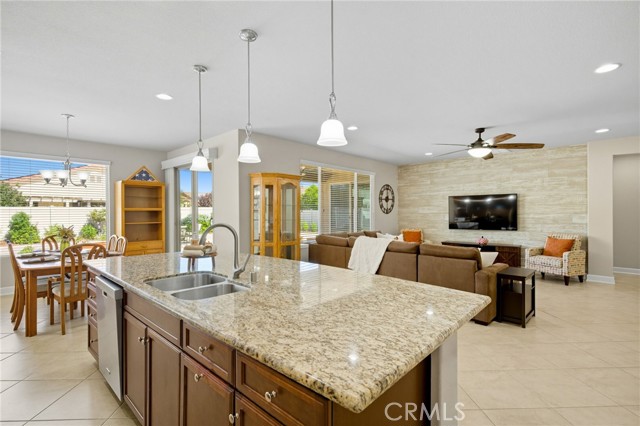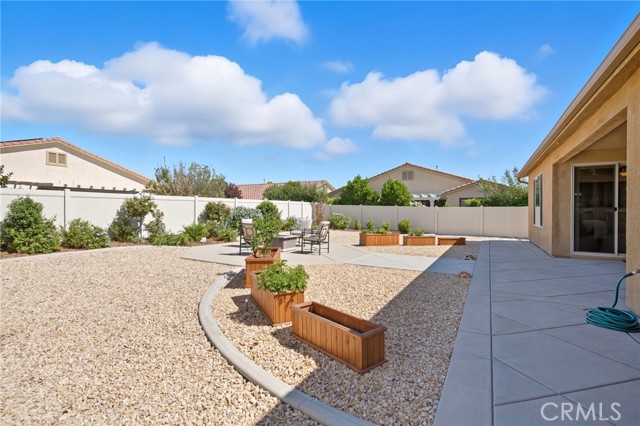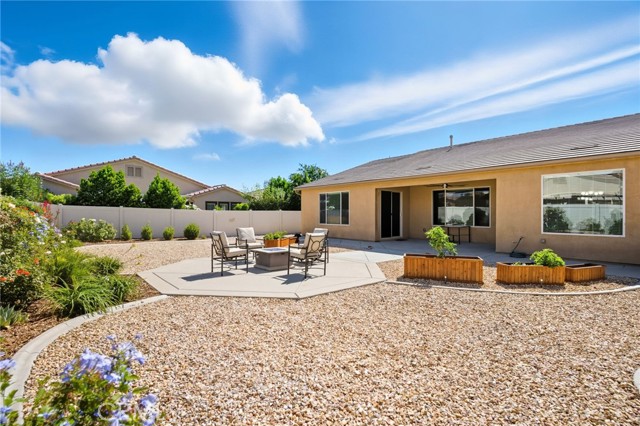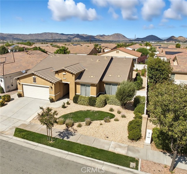 This is it—your turnkey Del Webb Haven model in one of Southern California’s most sought-after active adult 55+ communities. This spacious single-story offers 3 bedrooms, 2 bathrooms, and 2,030 sq. ft. of well-designed living space, plus a serene low maitenance backyard that is more than just concrete! Inside, you’ll find low-maintenance 20" porcelain (installed on a diagnal) square tile flooring and an inviting open-concept layout. The gourmet kitchen is a showstopper, featuring a massive granite island with sink, walk-in pantry, and premium KitchenAid appliances including a sleek stove hood and separate dining area. Entertain with ease thanks to the built-in wet bar with wine rack, sink, wine fridge, and abundant cabinetry. The family room shines with a modern shiplap accent wall, while the primary suite provides its own backyard access and a spa-inspired ensuite with dual sinks, soaking tub, walk-in shower, and large walk in closet with upgraded built in system. Two additional bedrooms and a full bath are located down a seperate hallway and seperated from the primary. The backyard is an entertainer’s dream—complete with a covered patio and ceiling fan, stamped concrete with gas-wired firepit, lush landscaping, and vinyl fencing. Gardeners will love the six cedar planter boxes, producing fresh vegetables (including green peppers) alongside mature orange and lemon trees on the side yard. But don't worry - this backyard is drought resistant with wifi enabled sprinklers! Additional upgrades include: Mohawk RevWood engineered flooring in bedrooms, tankless water heater, ADA-friendly doorways, hallways and toilets, recessed LED lighting, ceiling fans in every room, interior sprinkler system, coat closet, new AC condensation pan, new sprinkler valves and extra deep garage for trucks. Living in Solera Diamond Valley by Del Webb means access to the award-winning Mountain View Lodge—23,000 sq. ft. of resort-style amenities. Enjoy a state-of-the-art fitness center, indoor lap pool, spa, walking track, aerobics studio, hobby and craft rooms, ballroom, library, computer station, card room, billiards, and coffee bar. Outdoor amenities include two pools, tennis courts, bocce ball, BBQ areas, and miles of walking trails. Not to mention the monthly "View" Magazine offering residents a calendar of planned social events! Don’t miss this opportunity to own a beautifully upgraded home with one of the community’s best backyards!
