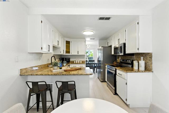 Welcome to this beautifully designed 3-bedroom, 2.5-bathroom townhouse in 1,481 sqft living space. Thoughtfully crafted with upscale finishes throughout, this home offers a lifestyle of elegance and ease. This home features hardwood floors throughout the main living spaces. Enjoy high ceilings, creating an open and airy retreat. Step into the kitchen, complete with stainless steel appliances and sleek stone countertops ideal for cooking and entertaining. The modern bathrooms feature contemporary fixtures and refined finishes, including a dual vanity in the primary en-suite bath. Step outside into your private patio, perfect for relaxing evenings or entertaining friends and family. This home is ideally situated beside a peaceful greenbelt, with no shared wall on one side for added privacy. Residents also have access to a community pool, enhancing the neighborhood experience. Located just minutes from local restaurants, within a mile of Safeway, and close to schools with convenient access to I-80, this home offers both tranquility and connectivity. Don’t miss your chance to own this exceptional property.
