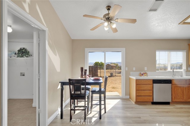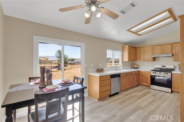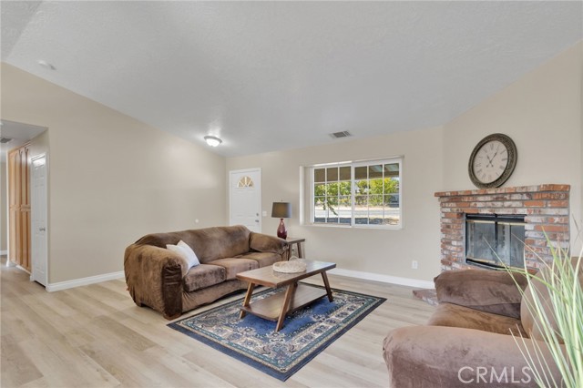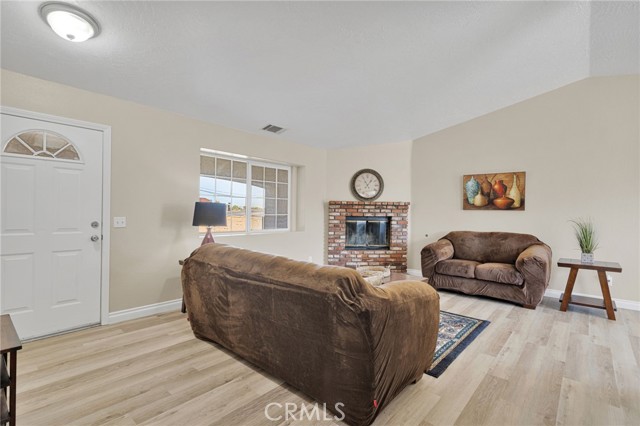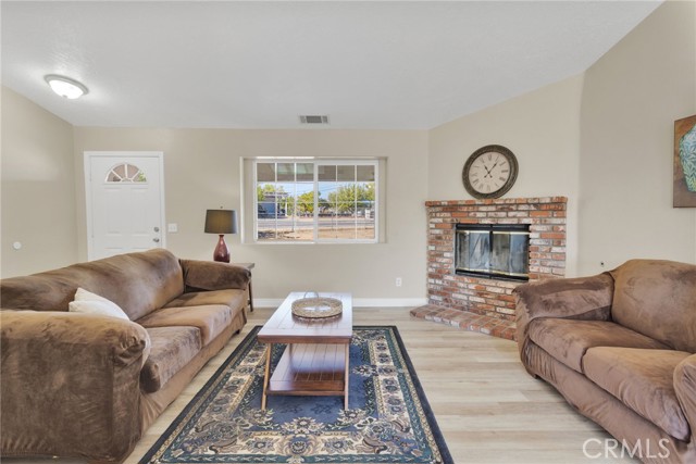 Move in ready home on a large corner lot. FURNITURE INCLUDED! This home has been prepared for you with fresh interior paint, exterior trim paint, NEW wood-look vinyl plank flooring, NEW appliances, baseboards, and other improvements you should tour to see. Located near Victor Valley College. Convenient location just minutes from Bear Valley Road, and the shops at Jess Ranch Market Center including theater, Super Target, Petsmart, multiple grocery stores, with more under construction. All the modern conveniences and shopping are close by. Kitchen has new appliances ready for you to host your housewarming party! Lots of counter space so buffet service for gatherings and parties is easy! This home is built with three bedrooms PLUS a fourth room that is IDEAL as an office, play room, or fourth bedroom. Indoor laundry is a large room with rack and cupboards. Linen storage built into the hall. Bedrooms are all comfortably sized. Large covered porch, shade tree for setting up an outdoor sitting area. This lot is FULLY fenced, and also cross-fenced separating the front yard from the back yard. Parking is ideal for cars, RV, trailers, and more. All carpet in the bedrooms has been professionally cleaned ahead of your arrival, so come enjoy and move right in at close of escrow.