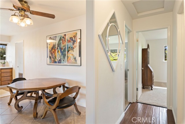 Discover the perfect blend of comfort and tranquility in this beautifully situated Ranch-style home on a serene cul-de-sac with amazing lake and mountain views. With 3 bedrooms and 2 bathrooms, this residence features a tiled entryway and a spacious kitchen/dining area that flows seamlessly into the step-down living room. Enjoy the convenience of new central heating and air conditioning, ensuring year-round comfort. Step outside to a welcoming covered front porch and a rear deck, perfect for entertaining or simply enjoying the peaceful surroundings. The property boasts a generous deep lot adjacent to undeveloped acrage, offering ample outdoor activities and relaxation space, with the added bonus of a lovely lake view for a touch of serenity. This home comes with a spacious, deep two-car garage that provides plenty of storage space, 360 extended eves, as well as easy access to the equestrian easement at the back of the property. Additional highlights include new windows, a newer HVAC system, and engineered hardwood flooring in the living area. The kitchen features a new solid surface countertop, and the hallways and bedrooms are adorned with premium stain-resistant carpet. The landscaped yard includes focal areas designed for relaxation, while the grooved driveway adds convenience during harsher weather conditions. Located in a gated golf community, this home is just moments away from Hidden Valley Lake and Swimming Pools, the new Greenview Bar and Restaurant, numerous local wineries, and Twin Pine Casino. This is truly the ideal location for your dream home!