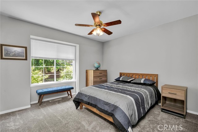 Live the Good Life in Hidden Valley Lake! This stylish, private & turn-key 3BD/2BA home is perfectly positioned just a 5-minute stroll from the community beach, dog beach, and fishing pier—making every day feel like a vacation. Tucked down from the street and hidden behind the lush & mature foliage, discover a beautifully landscaped front yard complete with a lawn & dog-friendly fencing. Step inside to vaulted ceilings, luxury vinyl plank flooring, and upgraded fixtures & ceiling fans. The big picture windows create a bright & welcoming atmosphere. The formal dining room opens to the back deck—perfect for al fresco meals—while the spacious kitchen boasts stainless steel appliances, abundant cabinetry, a breakfast bar, and a cozy dining nook with its own slider to the fenced side yard—ideal for pets or a small garden. Down the hall, find three comfortable bedrooms, all with plush carpet and modern lighting. The primary suite offers vaulted ceilings, a private balcony, and a hotel-inspired bath with dual sinks, a large walk-in closet, and a stall shower with dual shower heads. Enjoy peaceful afternoons on the back deck overlooking the low-maintenance backyard framed by graceful oaks and natural views. Located in the desirable, gated Hidden Valley Lake community, you’ll have access to the private lake, golf course, swimming pool, parks, tennis & pickleball courts, stables, and more—all from a home that blends comfort, style, and an unbeatable location. Home & pest inspections already completed for buyers and this house is ready to go!
