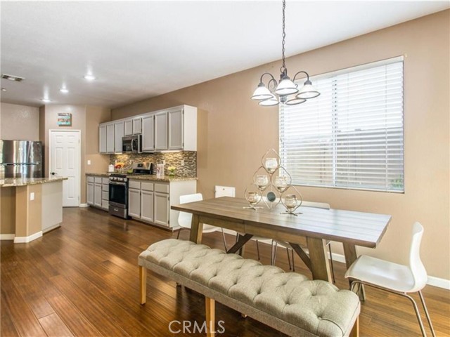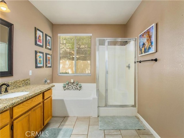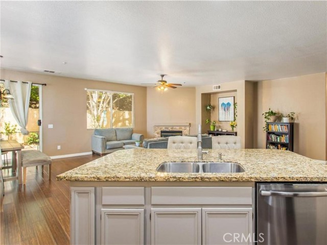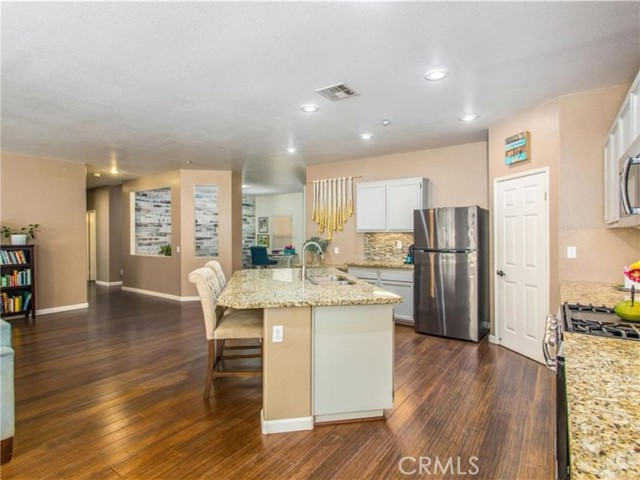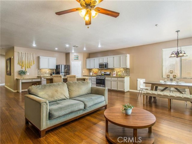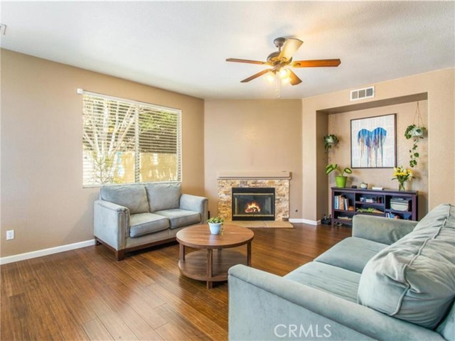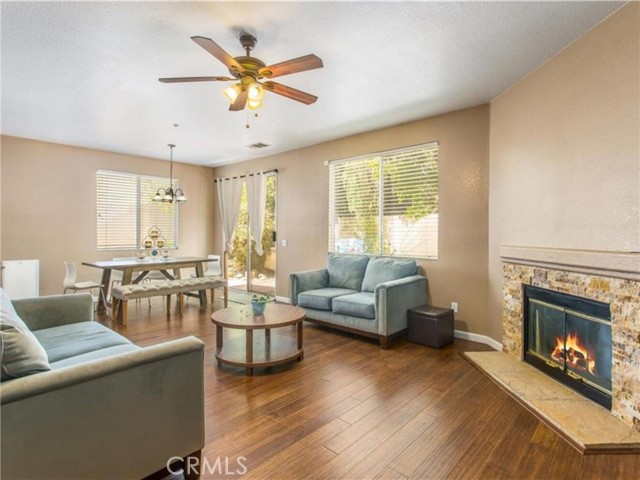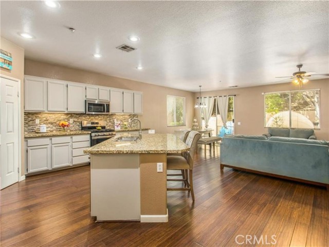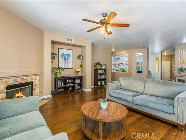Spacious East Highland home no HOA. The slopped backyard hill has pathways of trees and nature at it's best. Once you get to the top of the property line you have a beautiful hillside deck with built in seating and firepit. Breath and flow through life and be present to experience all life has to offer. You will notice gorgeous views valley and city lights. This home has a popular split floor plan with a primary suite on one side of the home and other 3 bedrooms and bath on the other side. The interior features a Open Floor Plan with recessed lighting and bamboo flooring. The kitchen/family room combo is a must see! The kitchen has granite countertops, backsplash and stainless steel appliances. You will love the kitchen island for extra seating or for creating a focal point for cooking or socializing. The family room has a fireplace for creating a wonderful ambience for all. Do you need a three car garage? Well you are in luck, it has a tandem garage with a pull down staircase for your attic. Too much to list! Call today for your personal tour!
