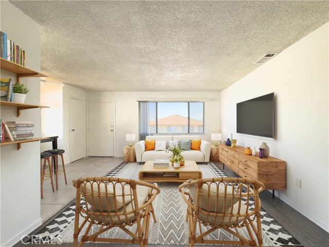 MOTIVATED SELLER - Welcome to Highland Palms! The spacious living area, adorned with newly installed sleek wood-like flooring, welcomes you with an abundance of natural light. The kitchen boasts white cabinetry, elegant countertops, stainless steel sink and a tile backsplash. With two bedrooms this home provides the perfect canvas for your unique style. Embrace the opportunity to create your ideal living space in this turnkey low-maintenance gem. Jet setters will also appreciate the short drive to SBD International Airport and plenty of entertainment awaits just 2.3 Miles at Yaamava Casino. Community Pool now open.