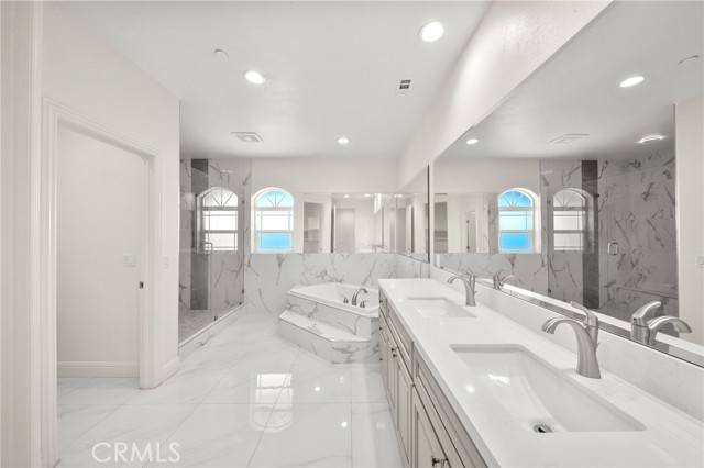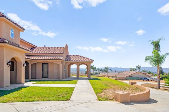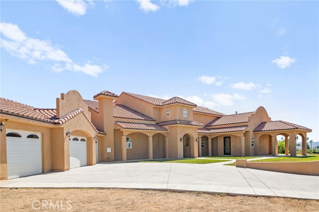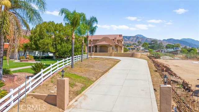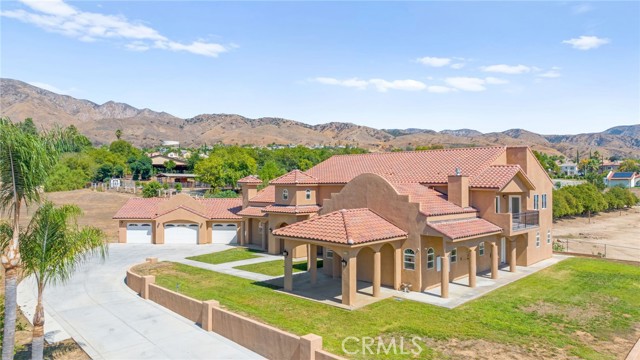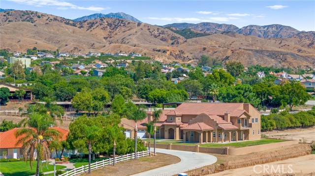 Custom built estate at the top of the cul de sac situated among other custom homes surrounded by city views and mountain. Come through the long driveway that leads to a Spanish/Mediterranean boasting 5,675 sq.feet property and 3 car garage is over 1,300 sq.feet and RV parking available.Enter the home to a grand entrance leading to a large living room with dramatic fireplace, all in an open floor plan with abundance of natural light. This estate has a large kitchen with a huge island, self closing cabinets, ample storage that opens to the dining and living room. There are 2 primary suites located one upstairs and one downstairs along with 3 more bedrooms and bonus rooms. There are 2 brand new AC, 2 brand new tankless water heater and certification for septic recently completed.This home rests on 1.69 acres. There is plenty of potential with entertaining guests outside or used for equestrian and zoned for a second unit. It’s close to schools, shopping, and hospital. Located in close proximity to I-210 and I-10 freeway.