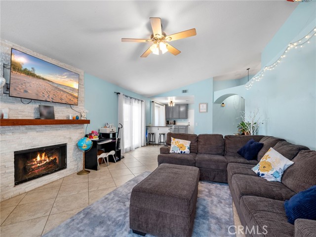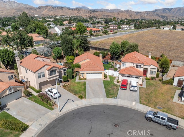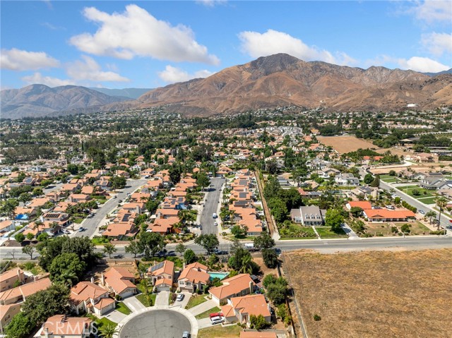 Welcome to Homestead Lane! This perfectly move in ready home offers 3 bedrooms and 2 bathrooms within 1,215 square feet of living space and is located in the highly desirable East Highlands Master Planned Community. This home is located on a quiet cul-de-sac and benefits by having an oversized 9,600 square foot property giving not only a terraced backyard but also side yard space as well. The home is inviting as you walk to the front door and greets you with an entryway that leads to the spacious living room with fireplace and separate access to both the side yard and back yard. The kitchen has been refreshed with painted cabinets and new solid surface quartz countertops. The dining area across from the kitchen also features additional cabinet space as well. The hallway leads to all three bedrooms as well as the hall bathroom and primary bathroom. The primary bedroom has its own sliding glass door access to the backyard. The backyard is its own entertaining space and offers a full patio deck made of trex decking for easy maintenance and upkeep, assortment of trees including citrus, plum, apricot, nectarine, avocado, apple, pear, and peach all within clean landscaping. The East Highlands Master Planned Community features a long list of community amenities such as swimming pools, spas, tennis courts, basketball courts, a catch and release lake, play ground, club house, hiking tracks and more. The perfect place to call home this property is located within the Redlands Unified School District and located not too far from all the expanded shopping and development recently constructed off of Greenspot Rd.