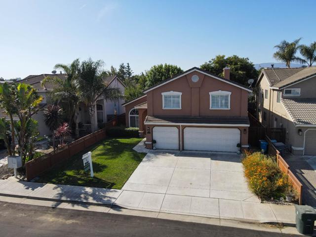 This spacious 4 bedroom with converted downstairs den made into 5th bedroom, 2-bathroom home offers a comfortable lifestyle with its well-thought-out design and modern amenities. The kitchen is a culinary enthusiast's dream, featuring a built-in oven range with gas, a convenient island, newer Formica countertops, a dishwasher, microwave, garbage disposal, and a pantry for ample storage. The home boasts a variety of flooring options, including carpet, laminate, and tile, to suit any taste. Enjoy cozy evenings by the tile faced fireplace in the separate family room which joins the kitchen area for cozy gathering for meals with family and friends, which can accommodate for the more casual dining and entertaining. There is a formal dining room for the more intimate gatherings with an easy access to the kitchen with the pass-though area. The primary bathroom includes double sinks and an oversized tub, providing a spa-like retreat. Laundry convenience is found on the upper floor, simplifying household chores. Additional highlights include a walk-in closet, central AC for comfort, and a 3-car garage. This Hollister home is truly a blend of functionality and style, ready to welcome its next owners.