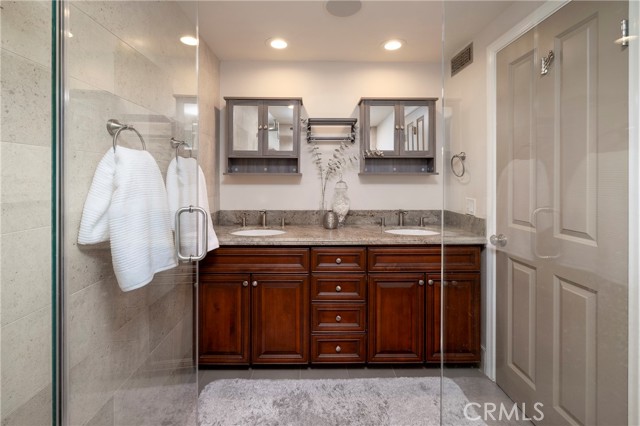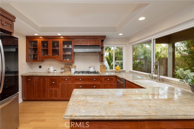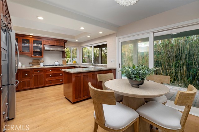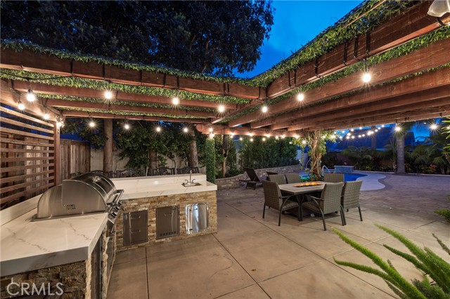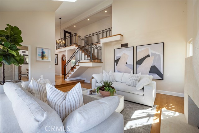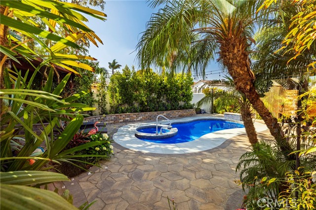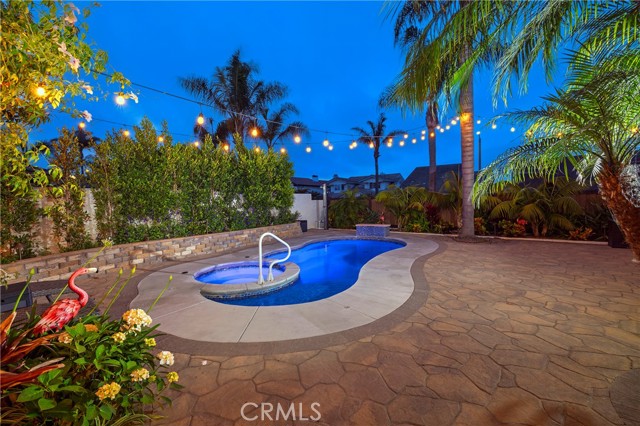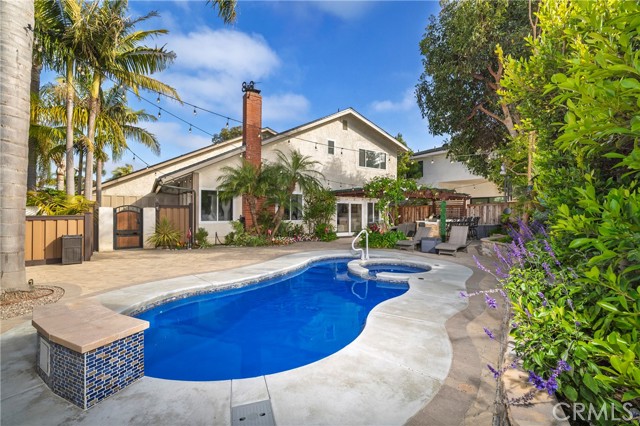 Discover luxury coastal living in this stunning 4-bedroom, 2.5-bath custom home located on prestigious Humboldt Island in Huntington Harbour. Situated on one of the island’s largest lots, this 2,433 sq ft residence has been thoughtfully upgraded. The expansive backyard is a true private oasis, perfect for entertaining or relaxing in style. Enjoy a sparkling new pool with soothing water features, a Baja shelf, submerged seating, and a bubbling spa. The outdoor kitchen is outfitted with Quartz stacked-stone finishes, a built-in sink, refrigerator, and premium FireMagic grill. Surrounded by lush tropical landscaping, stacked stone planters, and scored concrete decking, the space is completed by a covered patio and artificial turf. Impressive curb appeal greets you with stacked stone siding, a new roof, manicured grounds, an interlocking paver driveway with EV charging station, and a private gated courtyard. Step through double wrought iron and rain glass entry doors into a light-filled interior featuring soaring ceilings, multiple skylights, and refinished Maple hardwood floors. The open-concept floor plan includes a dramatic staircase with wrought iron railings, a grand foyer, a spacious formal living room with walls of glass and a custom fireplace, and an elegant formal dining room ideal for entertaining. The chef’s kitchen boasts Narcarado Quartzite countertops, subway tile backsplash, Mahogany cabinetry with hand-blown glass insets, pull-out drawers, and premium appliances including a Thermador 5-burner cooktop, Wolf oven, and Wolf microwave. It opens to a sunny breakfast nook and an oversized family room with built-in office niche. Upstairs, the serene primary suite features a cedar-lined, custom-organized mirrored closet and a luxurious ensuite bathroom with granite countertops, dual sinks, designer tile, and a walk-in shower. Three additional spacious bedrooms include one with a walk-in closet, and a beautifully remodeled guest bath with Limestone vanity and a Travertine-style shower/tub surround. Additional amenities include fully paid solar system, security surveillance, recessed lighting, dual pane windows, coffered ceilings, surround sound system, water purification system, tankless water heater, upgraded 200 AMP electrical panel and 100 Amp sub-panel and finished garage. Just steps from the harbor and close to top-rated schools, this exceptional home offers a rare opportunity to live in one of Huntington Harbour’s most coveted communities.