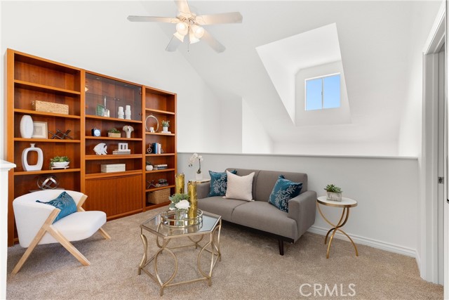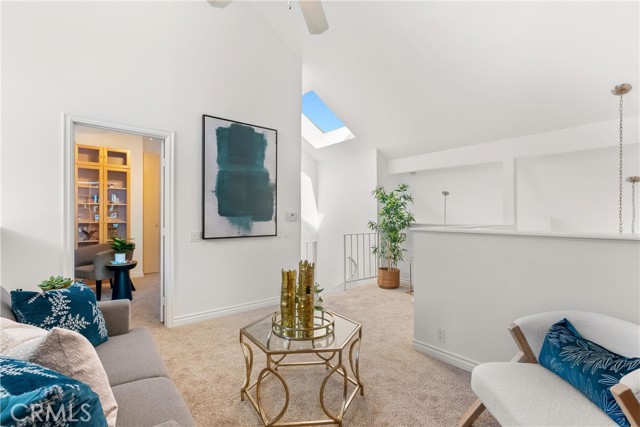 Step into the natural light in this 3rd floor PENTHOUSE unit with a view of the water lilies pond and unobstructed ocean sky sunset. The lower-level boosts 2 generous bedrooms and up the spiral staircase you will find an open loft and spacious enclosed office/ bonus room with storage closet. The vaulted ceilings allow you to enjoy the view from either level. Enjoy the built-in Scandinavian library and Bullion Cedar Wood California Closets on both levels. Perhaps the greatest indulgence is this unit has central A/C to keep it comfortable on the warm summer days. This floorplan allows you to live and work on separate levels if desired. With all new paint and carpet, it is move-in ready. Come take in the sunset view from the balcony that has sliding glass doors from the living room and one bedroom. Dine alfresco in the fresh sea air or inside in the dining area or eat-in kitchen area, the choice is yours! With close beach access and proximity to downtown this one will have you California dreaming. The complex also offers pools, spas, a sauna, fitness room, tennis courts, walking paths, streams and waterfalls...what more could you want? Start packing and come enjoy your new home!