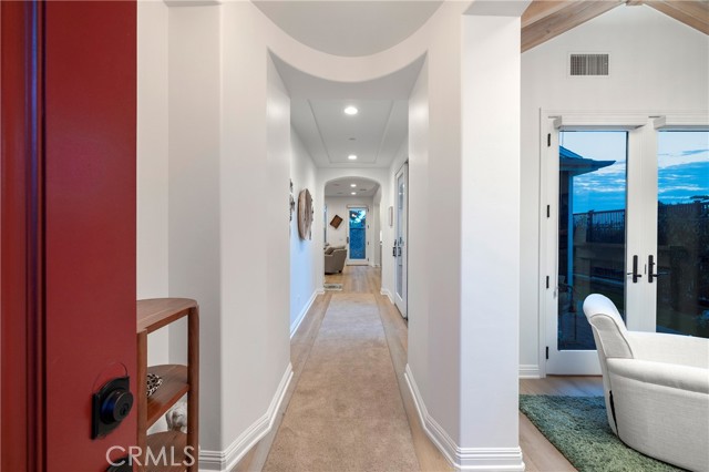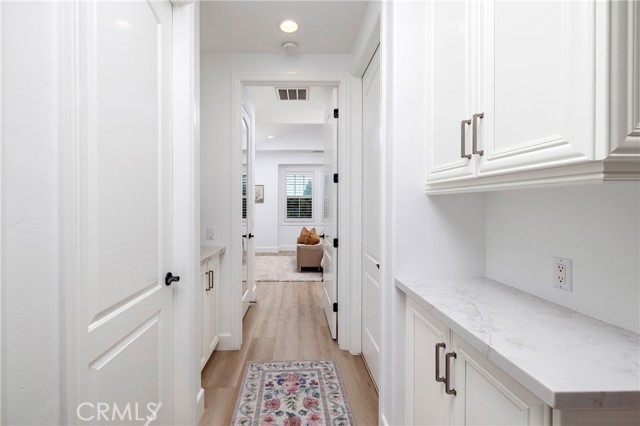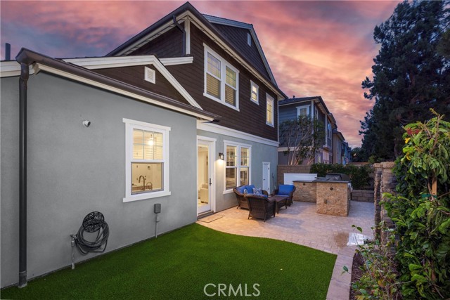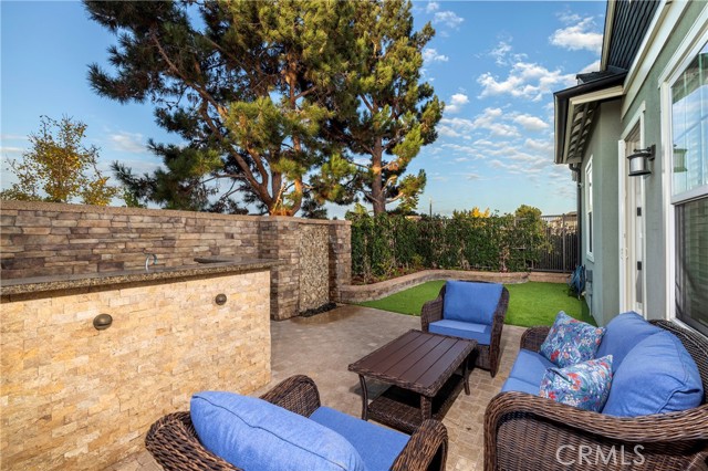 Ideally positioned at the end of a cul-de-sac in the coveted and highly desirable community of Brightwater, this Plan One Trails Model is situated overlooking the wildlife sanctuary tucked inside the quaint interior tract. The home is truly turn-key and has been updated with gorgeous luxury flooring, fresh paint on all interior walls and cabinets, new light fixtures, and endless high-end amenities throughout. This 1797 SF three bedroom, two and a half bath property offers a two-car garage with added built-in storage including racks and cabinets, and an oversized three-car driveway. Coastal energy, charming warmth, and attention to detail make this home so appealing. The primary suite showcases two spacious closets with built in storage, a relaxing soaker tub, separate shower and double vanities. The two additional bedrooms feature finished closets and a shared full bathroom. The kitchen is open and bright with a large eat-at island and high-end Viking and Wolf appliances. The exterior grounds have been professionally designed to include drought conscious, low maintenance, and beautiful landscaping in the front and back yards, including a tranquil water feature, lighting, turf and a built in BBQ and bar. Easily stroll to the community pool or Wetlands hiking paths, just a short distance away. The house has PAID FOR solar, and an electric vehicle charger with low HOA fees, access to two community pools, the Clubhouse, parks and many trails nearby. Huntington Harbour, Bolsa Chica State Beach, shopping, dining, Meadowlark Golf Course, excellent and award-winning schools and every desired outdoor activity are conveniently located just minutes from this Cape Cod style house. With safety and security in mind, this home is equipped with an ADT alarm system. Enjoy peace of mind in knowing the Brightwater Community also provides onsite security patrols daily and nightly.