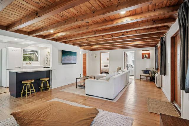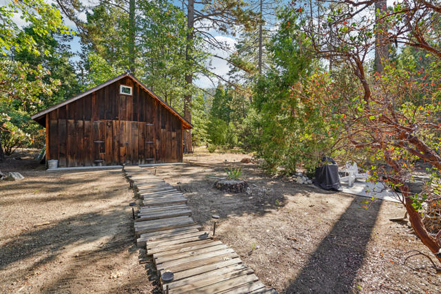 Oakwood Cottage, circa 1930 vintage cabin that perfectly captures the spirit of ''Olde Idyllwild.'' Lovingly renovated with today's comforts while preserving its timeless character, this enchanting cottage sits on a large, flat, tree-lined lot just a short 2-min stroll to the village shops, cafes, and galleries. Brimming with rustic charm, the home features beautifully refinished original Douglas fir floors, a true wood-burning fireplace, and a cozy ambiance that invites relaxation. Modern updates over the yrs include new electrical, plumbing, insulation, roof, cabinetry, & elegant marble countertops. Comfort meets convenience with 3 mini-split systems for heating and air conditioning, plus an EV charger. Location is a plus, while the property's setback from the street ensures privacy & a peaceful retreat-like feeling. Outside, the original detached barn, restored & full of character, offers endless possibilities: an entertaining space, guest quarters, studio, storage, or potential ADU conversion (buyer to verify). Rarely do ''Olde Idyllwild'' cottages this close to town come available. Oakwood Cottage is a storybook opportunity to create lasting memories in the heart of Idyllwild.