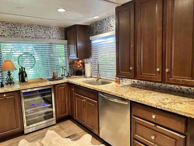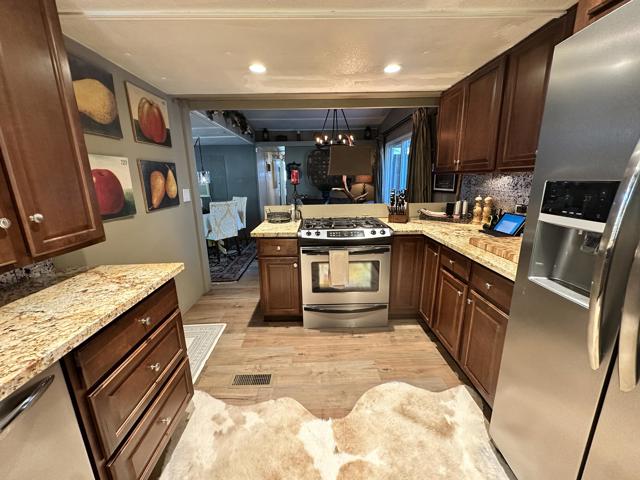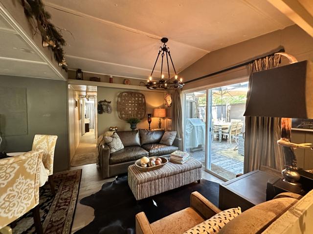 Step into effortless mountain living with this beautifully updated 1966 smart mobile home, offered fully furnished and move-in ready. This inviting 2-bedroom, 1-bath home features a grand kitchen with modern appliances and all the bells and whistles, a spacious dining area with a cozy propane freestanding fireplace, and smart home upgrades including security cameras, a smart system, and automated lighting for comfort and peace of mind. Enjoy multiple outdoor spaces, including a front deck and yard with a tranquil water fountain, a back deck overlooking the open meadow, a large side yard, and a side deck showcasing a private patio area complete with hot tub and entertainment space, as well as a covered area for storage. Parking is available for two cars, and the space rent is $675 per month. With its blend of privacy, smart features, and turnkey comfort, this is a must-see opportunity for your next Idyllwild escape.