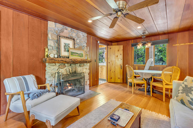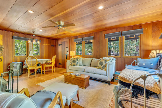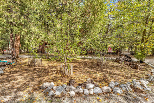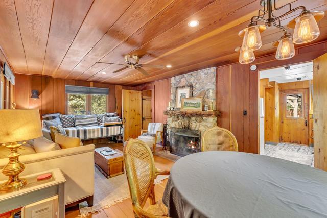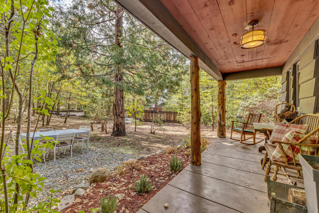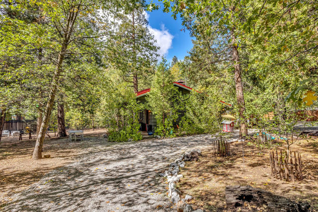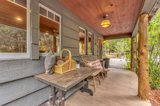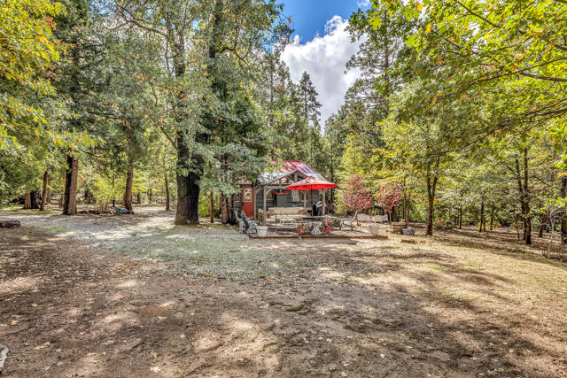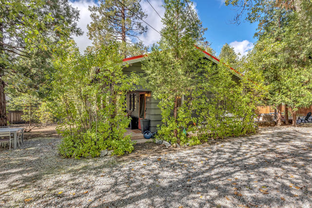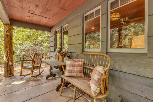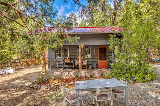 Nestled on a spacious .62-acre flat, fenced lot, this vintage 1937 mountain farmhouse blends timeless character with modern comfort. Just a short stroll to Idyllwild's charming town center, the home welcomes you with a classic front porch-perfect for morning coffee or evening sunsets. Inside, you'll find original hardwood floors, a cozy rock fireplace, and the warm, inviting cabin feel that defines true mountain living. The updated kitchen features decorative tile floors, quartz countertops, and updated appliances, including a washer and dryer. The remodeled 3/4 bath combines style and function, while the standing seam metal red roof offers both durability and rustic appeal. Step outside to enjoy the expansive outdoor entertaining area, ideal for gatherings under the pines, plus a handy storage shed for tools or hobbies. This unique property offers the best of Idyllwild-vintage charm, walkable convenience, and peaceful mountain serenity-all on a beautiful, usable lot.