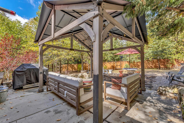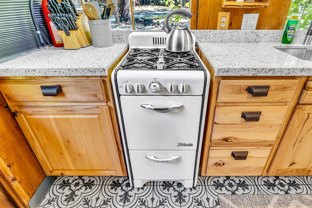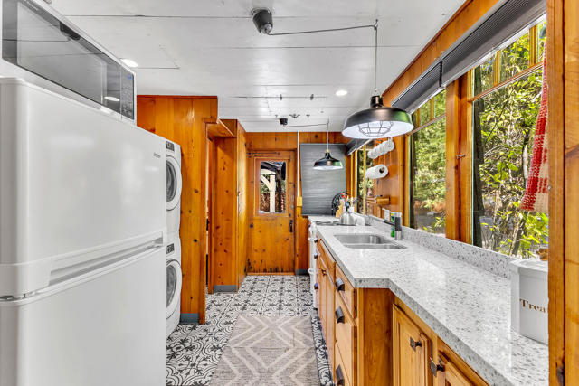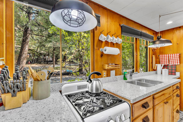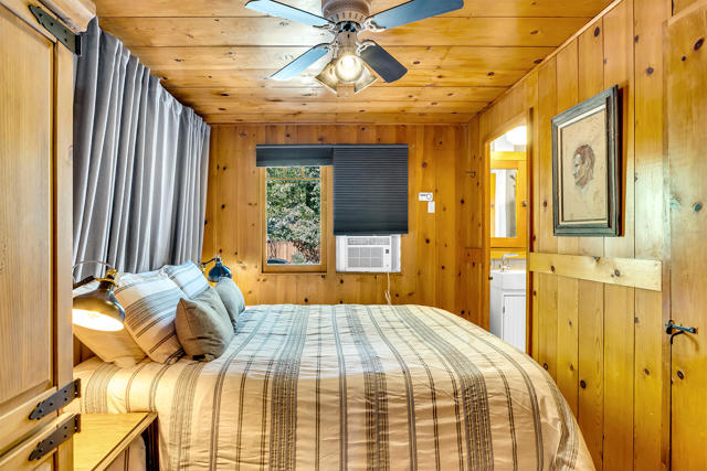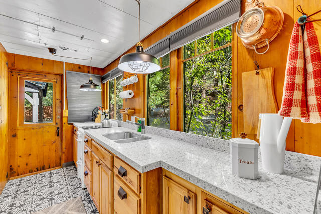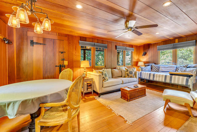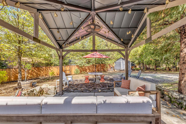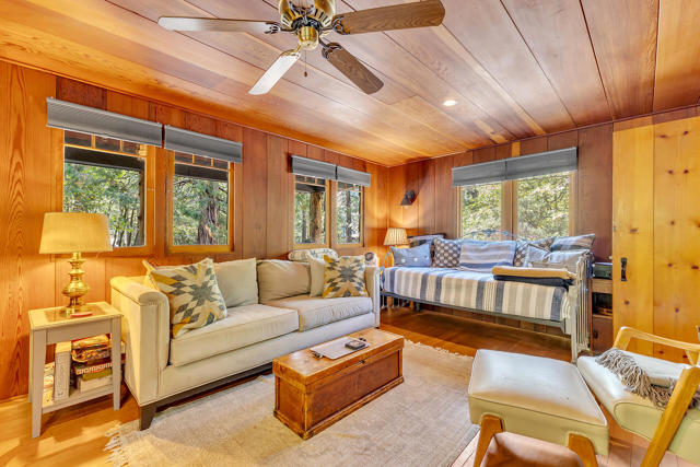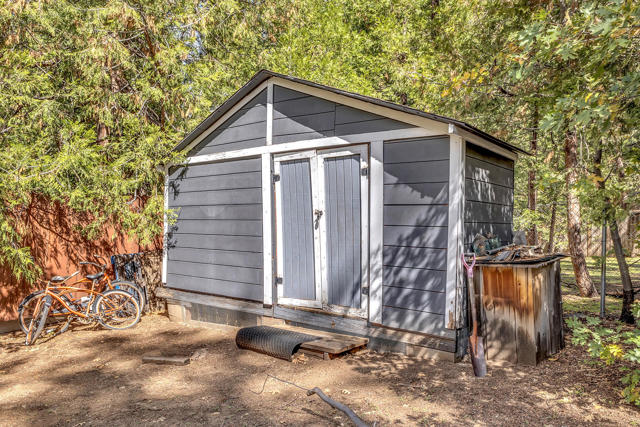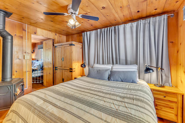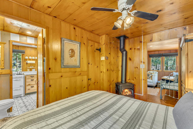 Nestled on a spacious .62-acre flat, fenced lot, this vintage 1937 mountain farmhouse blends timeless character with modern comfort. Just a short stroll to Idyllwild's charming town center, the home welcomes you with a classic front porch-perfect for morning coffee or evening sunsets. Inside, you'll find original hardwood floors, a cozy rock fireplace, and the warm, inviting cabin feel that defines true mountain living. The updated kitchen features decorative tile floors, quartz countertops, and updated appliances, including a washer and dryer. The remodeled 3/4 bath combines style and function, while the standing seam metal red roof offers both durability and rustic appeal. Step outside to enjoy the expansive outdoor entertaining area, ideal for gatherings under the pines, plus a handy storage shed for tools or hobbies. This unique property offers the best of Idyllwild-vintage charm, walkable convenience, and peaceful mountain serenity-all on a beautiful, usable lot.