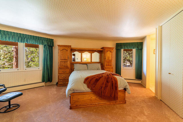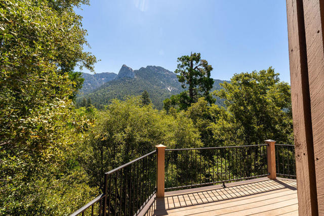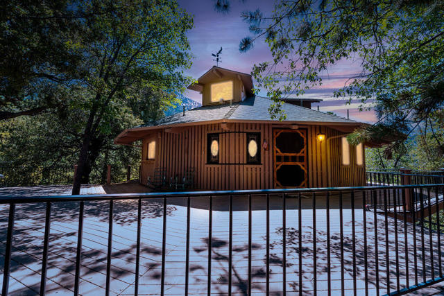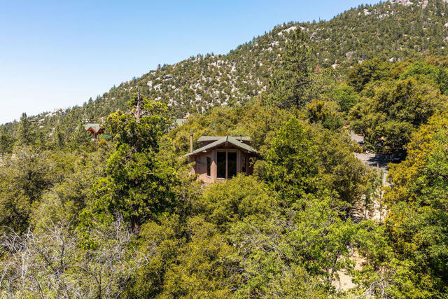 Discover mountain living at its finest in this custom luxury home in the gated community of Alpen Woods. With breathtaking panoramic views of Tahquitz Peak and Lily Rock, this one-of-a-kind property offers tranquility and inspiration. Its unique cylindrical design floods the home with natural light, complemented by vaulted ceilings, rustic woodwork, and a wraparound deck for stargazing or dining al fresco.Inside, four spacious bedrooms each have ensuite bathrooms for ultimate privacy. A cozy fireplace warms the great room, while a classic potbelly stove anchors the main floor, perfect for intimate gatherings. The loft, illuminated by skylights, offers versatile space for an office, hobbies, or extra sleeping quarters. Wine lovers will appreciate the wine cellar with a cozy card-playing nook.The gourmet kitchen boasts a commercial stove and ample pantry space, catering to both casual meals and culinary creations. Set on 1.26 acres, the property includes a seasonal creek and a deck for entertaining or relaxing in nature. With a three-car garage and abundant parking, this home blends luxury, comfort, and natural beauty