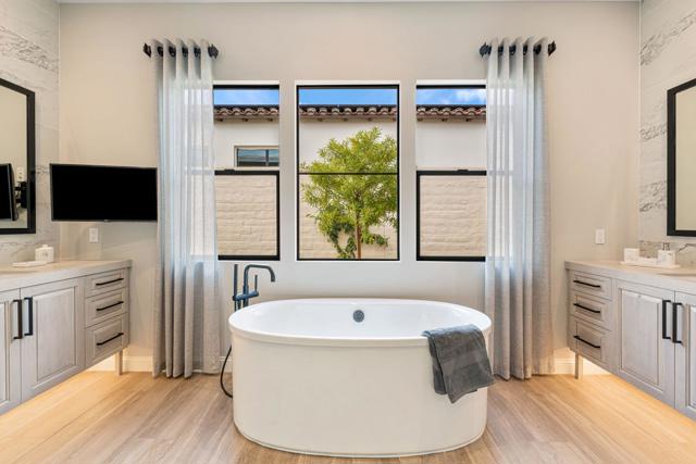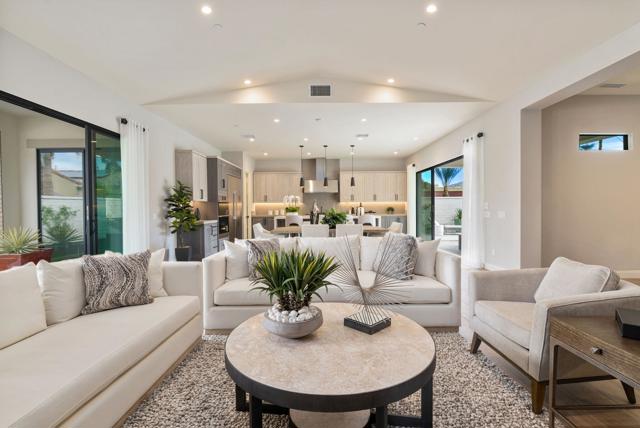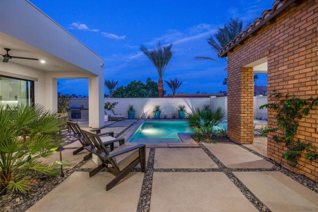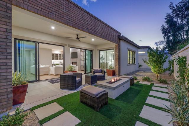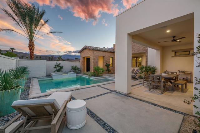 Location, views, newly built and turnkey... Season in the desert awaits you! Welcome to the GHA Collection at The Province Indian Wells. This is the plan one former model home and is being sold fully furnished. The home is located on a corner lot with exceptional views of the Eisenhower peak. Home features three bedrooms with ensuites including a casita, plus an office with pool view and secluded flex room perfect for a second office or gym. Other highlights include an owned solar system, tesla back up battery, sonos sound system, smart home features, outdoor kitchen, firepit, fireplace, saltwater pebble finished pool, spa, gated courtyard and porcelain tile throughout to name a few. The floor plan is light and bright with open concept living and seamless indoor-outdoor spaces that frame the modern architecture and surrounding desert landscape. A true gem, designer finished, furnished and just in time for season!