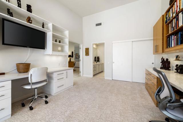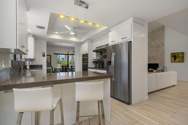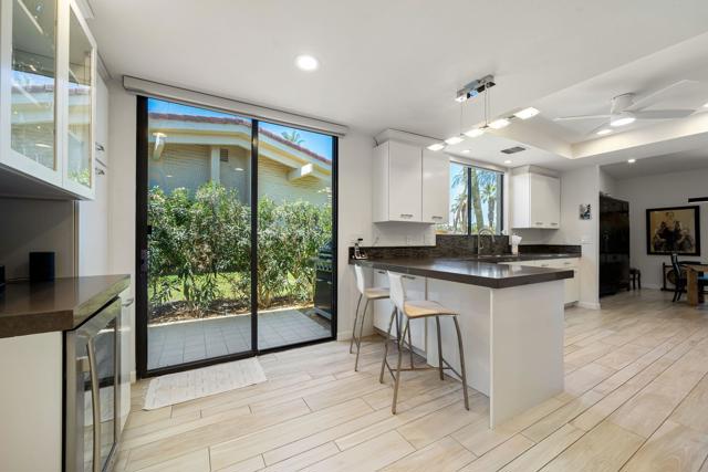 Discover elevated desert living in this beautifully reimagined home at Desert Horizons Country Club, one of Indian Wells' most prestigious communities. Thoughtfully designed for both comfort and sophistication, this 3-bedroom, 3.5-bath residence spans over 3,000 sq. ft. and showcases light-filled interiors with views of the golf course, tranquil lake, and surrounding mountains.A gracious double-door entry opens to a spacious living room with walls of glass that invite the outdoors in. The gourmet kitchen flows seamlessly into a cozy den, creating the perfect setting for everyday living or casual gatherings with family and friends.The expanded primary suite serves as a private retreat, featuring a versatile flex area perfect for a home office or fitness studio, generous walk-in closets with custom built-ins, and a spa-inspired bath. Guests are well cared for in the ensuite guest bedroom with serene courtyard and mountain views, while the second guest room has been transformed into a practical home office with dual workstations and custom cabinetry.Additional upgrades include Italian porcelain tile floors, new bedroom carpeting, a remodeled powder bath, fresh interior paint, updated lighting and fixtures, and significant system improvements such as dual 4-ton AC units, a newer water heater, epoxy-finished garage floors and a leased solar system for enhanced energy efficiency.Residents enjoy the recently completed clubhouse, a desert-modern showpiece offering a full-service restaurant and bar, casual cafe, 8,000 sq. ft. wellness center, pro shop and a courts pavilion with 11 pickleball and 2 tennis courts. Here, resort-caliber amenities meet timeless desert elegance--just minutes from world-class dining, shopping, and events in the heart of Indian Wells. Schedule your private showing today.