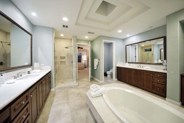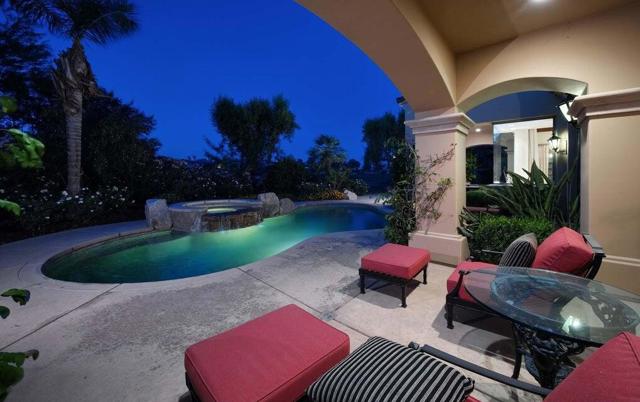 This beautiful home inside Toscana Country Club offers spacious desert living on a generous corner lot. New, mature landscaping provides ultimate privacy while still allowing for spectacular views of the mountains and Hole 4's Green of the Jack Nicklaus Signature North Golf Course. Upgrades to this home include fresh interior and exterior paint, newer HVAC, new pool equipment, and updated furniture. Inside, the two sets of sliding glass doors blend indoor-outdoor living areas, while the wetbar provides butted-glass windows allowing for panoramic views. The gourmet kitchen offers the perfect entertainment prep space, complete with ample cabinetry, island, breakfast bar peninsula, granite counterops, and SubZero Wolf stainless steel appliances. For casual dining, a breakfast nook is accompanied by a dry bar perfect for morning coffee. Retreat to the master bedroom,which features space to lounge, and sliding glass doors to a private patio overlooking the pool and spa. The grand en-suite has His & Hers sinks with separate vanity, enormous soaking tub, walk-in shower, and His & Hers closet entries. Guests can relax in the main-home guest room, or a more secluded guest room with access to a private patio in the courtyard.