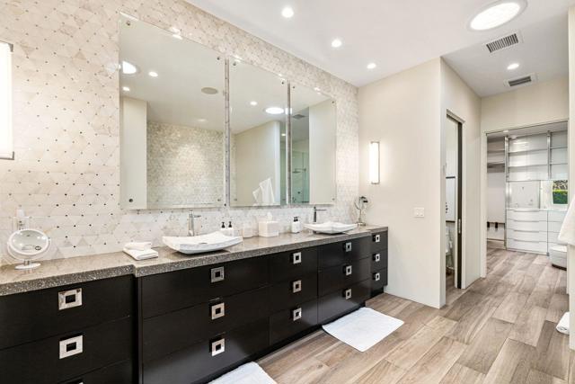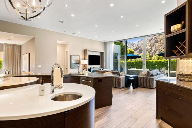 New co-ownership opportunity: Own one-eighth of this professionally managed, turnkey home. Even if you don't play golf, this Coachella Valley home scores a hole in one. The contemporary masterpiece is located on historic Indian Wells Country Club, the original location of the famous Bob Hope Classic golf tournament. The open floor plan brings dining and multiple entertaining areas together, all with views of the inviting pool, one of two fireplaces and mountains beyond. A unique, round kitchen features intersecting round islands, gleaming custom cabinetry and curved breakfast bar. Off the kitchen is a more intimate dining space complete with wine fridge. The home has four en-suite bedrooms, including two tasteful primary suites that feel like a five-star resort -- one tub wall even has a small gas fireplace to enhance the spa-like experience. The resort feel continues outside, with the swimming and spa pools surrounded by mature landscaping and hedge, giving the home true privacy from the adjoining golf course. The home also includes an attached casita with its own entrance, a bedroom, bath, kitchen and laundry, making it perfect for guests. Prior to closing, the home will be professionally designed with new furniture and decor.