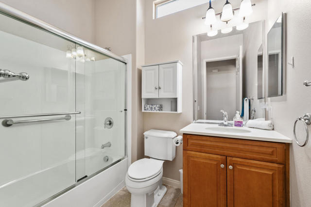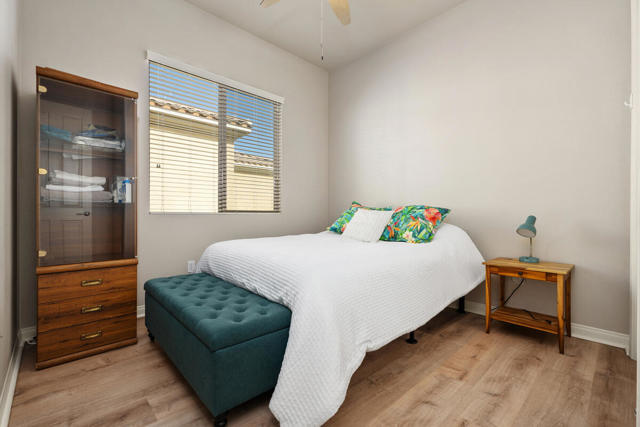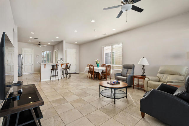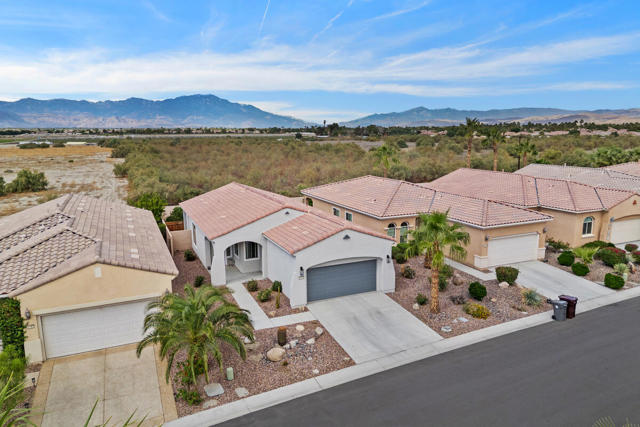 Welcome to this charming and freshly updated Canterra floor plan offering 1,257 sq. ft. of comfortable living space, ideally situated with a panoramic mountain view in Sun City Shadow Hills. The inviting great room features tile flooring, two large windows, and a sliding glass door that fills the space with natural light and provides easy access to the backyard. The kitchen showcases updated appliances with a newer refrigerator, dishwasher and microwave, granite countertops, and abundant cabinetry with room for a cozy breakfast nook. A separate laundry room adds everyday convenience. The AC was recently replaced in 2023 and heating system updated in 2024. The primary suite offers luxury vinyl tile, a large picture window overlooking the backyard and mountain views, a walk-in closet, and an ensuite bathroom with dual vanities and a shower stall. The guest bedroom, also with LVT flooring, is located near a full bath with a shower-over-tub combination perfect for visitors. The garage has been updated with insulated garage doors and built-in storage. Step outside to enjoy a spacious backyard featuring a covered patio, extended concrete area ideal for outdoor seating, and low maintenance desert landscaping. This beautiful move-in ready home was painted inside and out in the last 12 months. Sun City Shadow Hills is an active 55+ community offering resort-style amenities, including two clubhouses, championship golf courses, fitness centers, pools and spas, pickleball and tennis courts, and a variety of social clubs and activities designed for every interest. Enjoy the perfect blend of recreation, relaxation, and connection in this vibrant desert community. Don't miss the opportunity to make this inviting Canterra yours!