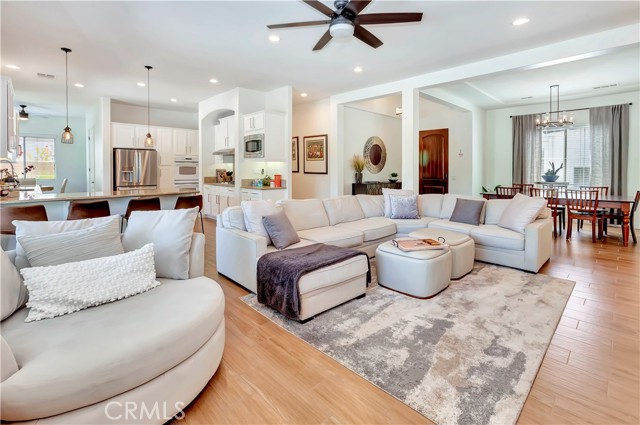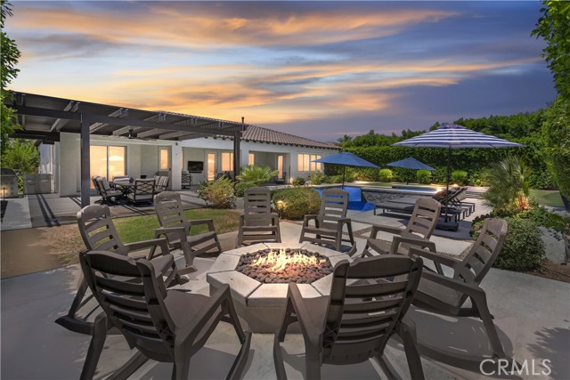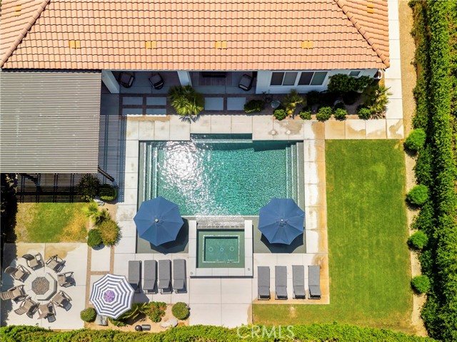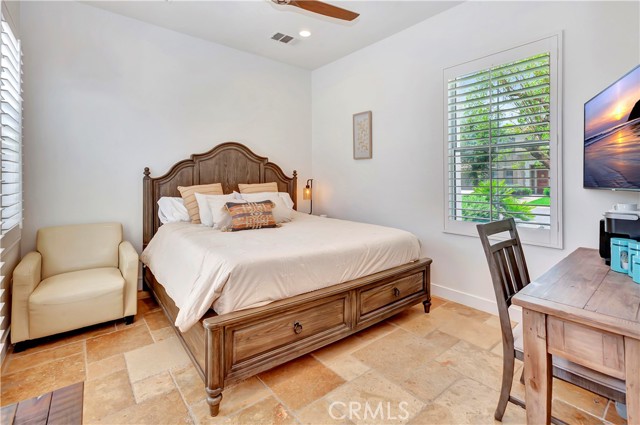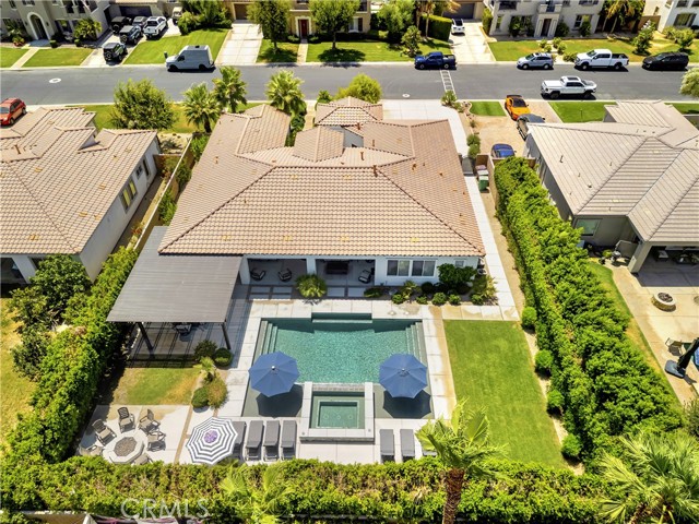 This is an absolute show stopper! FULLY FURNISHED Residence 2 plan with 6 bedrooms & 4.5 bathrooms completely upgraded. Wide plank wood tile flooring flowing into the open concept living space. Quartz and Granite counters, upgraded cabinets, 5 1/2 inch baseboards, built in fireplace, 8ft doors, and 10ft ceilings. Casita excellent for additional family or to rent out separately. Amazing air conditioned garage converted into a game room with flooring, built in refrigerator, foosball, shuffle puck, & pool table etc... This home has it all! Don't overlook the incredible private backyard perfect for entertaining. Features include newer pool & spa, Pergola covered patio, fire pit, & $10,000 worth of Sonos speakers. Orchard is approved for 5 short term rentals per year during the festivals. Perfect for a primary or secondary home with the ability to rent during festival season.