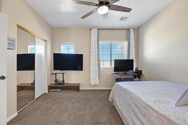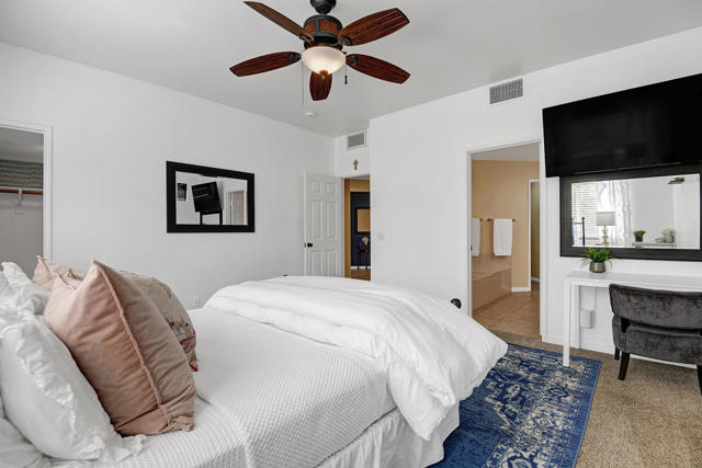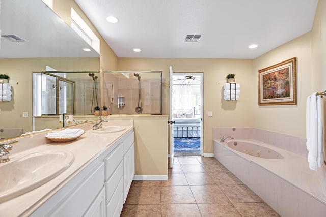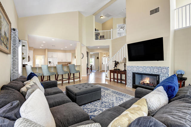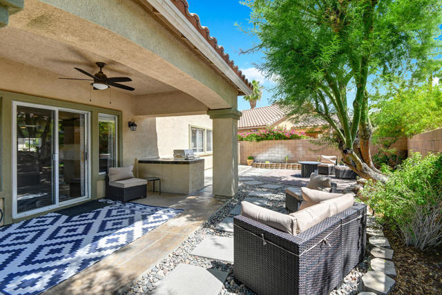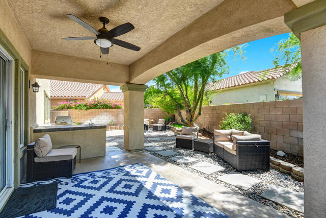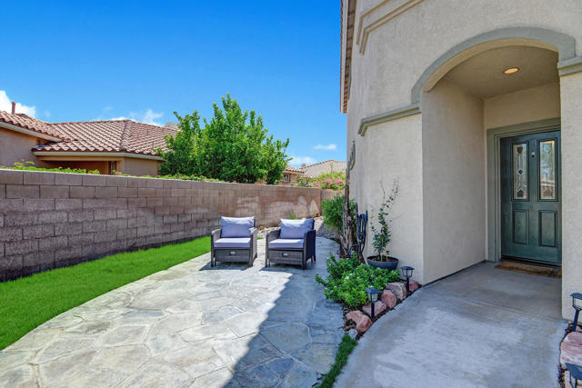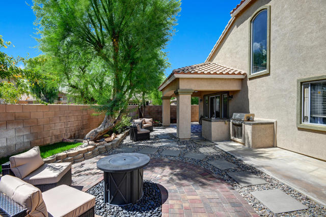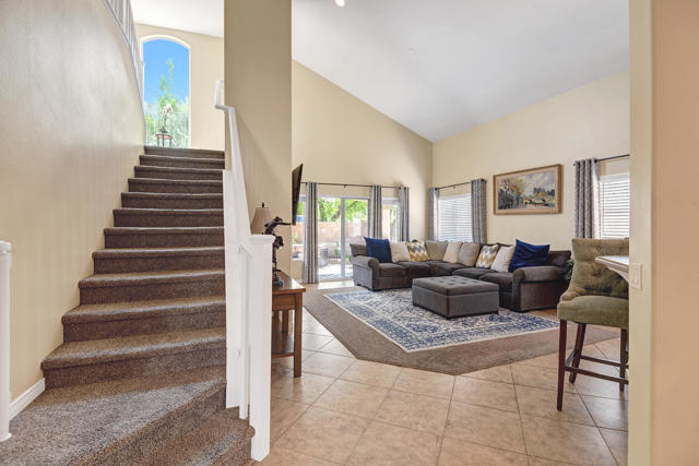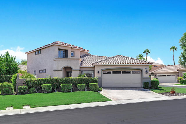 Located in one of Indio's best golf communities, with excellent proximity to La Quinta and Highway 111, this relaxing two-story home on a corner lot boasts 3 bedrooms, 3 baths, with upgraded front and back yard areas. The expansive downstairs includes a half bath, powder room, along with a primary bedroom that offers two spacious walk-in closets, and a bathroom with a standing shower and hot tub. There's ample space and storage throughout the kitchen with gas range, and double ovens. The light and bright living room with fireplace makes for an inviting area to entertain friends and family, only made more comforting with the high ceilings & natural lighting. Upstairs you will find the two well maintained guest bedrooms, with a shared Jack & Jill bathroom, and an office space on the loft. The garage has a Tesla charging station installed as well. Walking distance to the gym and pool around the corner. The 24-hour guard-gated entrance provides welcome peace of mind. Located within the highly regarded Desert Sands Unified School District, this home speaks to families seeking not only a gracious family home but also an exceptional education. Embrace a life where every facet of comfort, leisure, and convenience intertwine to provide a wonderful life experience. HOA includes exterior landscape maintenance, TV, Internet, gym and pool access.