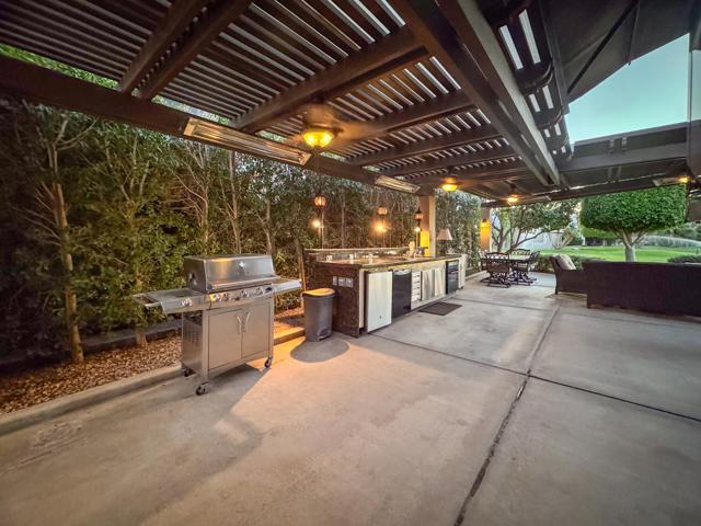 This beautifully appointed RV lot offers one of the most desirable locations at Outdoor Resort Indio, with sweeping views of the golf course, sparkling fountain, serene lake, charming bridge, and the majestic Santa Rosa Mountains. Designed with both comfort and style in mind, the lot feels exceptionally private while being just a short walk to the clubhouse and resort amenities.The L-shaped Alumawood pergola creates a shaded outdoor living space, complete with four ceiling heaters and four ceiling fans for year-round comfort. The spacious kitchen features granite countertops, custom covers, and a rolling BBQ--perfect for entertaining family and friends. Furnishings include a dining table with six chairs, wicker sofa and chairs, ottomans, and a rolling storage cabinet, all thoughtfully protected with custom covers.Additional upgrades include a water softener, custom lighting, and abundant seating options, making this lot move-in ready for the next discerning owner. Whether you're hosting a gathering under the pergola or relaxing by the lake at sunset, this property delivers the perfect blend of luxury and tranquility in one of the desert's premier Class A motorcoach resorts.ORI is a class A motorcoach community.