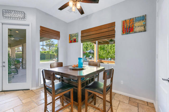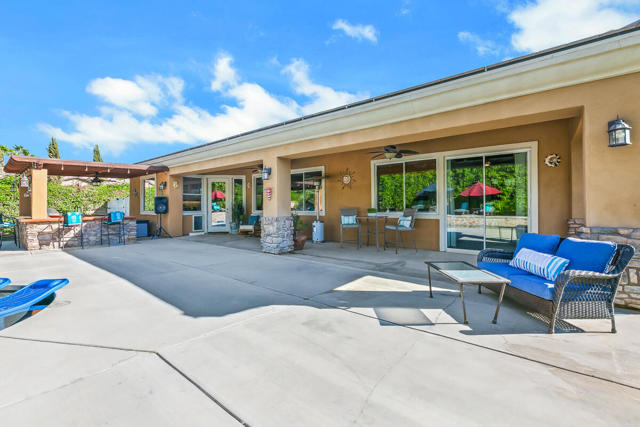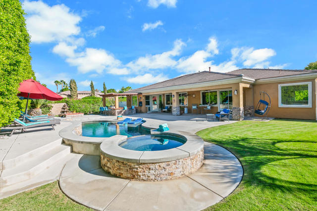 Welcome to this beautiful 4-bedroom, 3-bath home in the highly sought-after gated community of The Orchard--a private enclave just minutes from the Empire Polo Grounds and the world-famous Coachella and Stagecoach festivals.Spanning 2,766 sq. ft. on an expansive 13,068 sq. ft. lot, this residence seamlessly blends elegance and functionality. Inside, you'll find travertine flooring throughout the main living areas and primary suite, complemented by plush carpeting in the additional bedrooms. The chef's kitchen is designed to impress, featuring stainless steel appliances, granite countertops, and a designer backsplash. A statement fireplace with herringbone tile anchors the living room, while a tray ceiling elevates the formal dining area's sophistication.The primary suite is your private sanctuary--complete with a generous walk-in closet and a spa-inspired en-suite bath.Step outside to your personal resort: a saltwater pool and spa, outdoor kitchen, covered patio, and suntan deck surrounded by a lush ficus privacy wall. Ambient lighting, a tranquil fountain, and an outdoor shower create a true retreat for relaxation or entertainment.Perfectly situated for festival-goers, investors, or full-time residents, The Orchard allows up to five short-term rentals per year (buyer to verify), offering rare flexibility and excellent income potential during peak event seasons.Experience luxury, location, and lifestyle--all in one exceptional property.