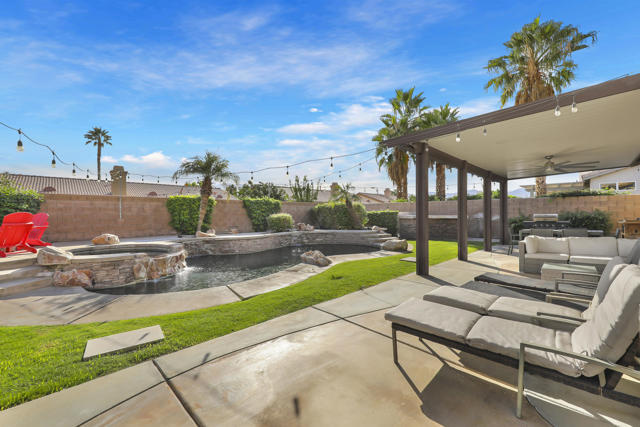 Welcome to your private desert retreat--where comfort, style, and fun come together. The backyard is an entertainer's dream, featuring a sparkling pool, relaxing spa, fire pit, outdoor island, and a spacious patio perfect for gatherings with family and friends under the desert sky. The front of the home has been freshly painted, and the mature landscaping adds to the home's inviting curb appeal. A new central AC system, installed in 2021, keeps the home cool year-round, while the garage includes a mini-split AC unit, creating a versatile space ideal for a game room, studio, or home gym. This property is perfect for a family home, vacation getaway, or short-term rental near world-class music festivals and seasonal events. Move right in and start enjoying the desert lifestyle--just minutes from the polo fields, tennis tournaments, golf courses, casinos, shopping, dining, and more. Come experience a home that truly captures the spirit of desert living.