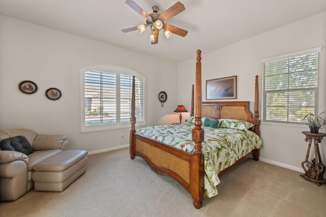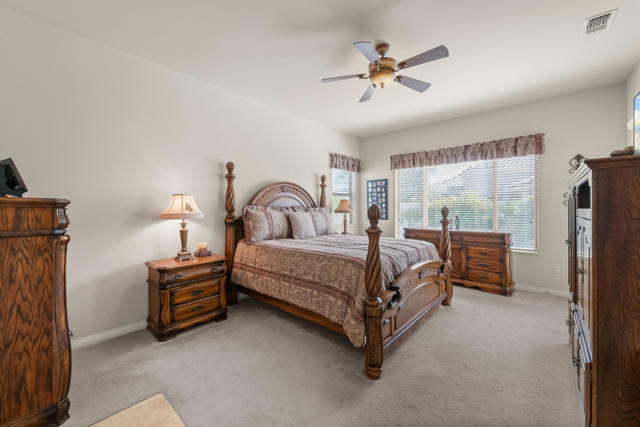 Welcome to this stunning San Miguel floor plan, beautifully finished and situated on a quiet corner privacy lot in the coveted gated community of Sun City Shadow Hills. This gem features a private pool, spa with waterfall feature, and built-in BBQ island and serving bar -- the perfect setting for year-round desert living. This 2,569 SF home with two private suites feels elegant and has been exceptionally maintained. Inside, elegant tile and plush carpet pair with custom window coverings, designer accent walls, and soaring ceilings with recessed lights and ceiling fans to create a warm, inviting atmosphere. The open layout offers multiple spaces for both entertaining and everyday living, including a formal dining area, spacious family room, and a versatile den with double door entry. This spacious kitchen has granite countertops, a center island, and two ovens perfect for entertaining. The primary suite offers patio access, dual vanities, an oval soaking tub, a glass-enclosed shower, and an oversized walk-in closet. The second suite features its own private entrance and full bath, providing comfort and privacy for guests. Additional features include a two-car plus golf cart garage, spacious laundry room with ample storage, and a newer A/C. Residents of Sun City Shadow Hills enjoy resort-style amenities including two clubhouses with fitness centers, pools, tennis, pickleball, bocce, golf courses, walking trails, on-site dining, and over 60 social clubs. With 24-hour gated security and a vibrant calendar of activities, it's the perfect place to stay active and connected year-round.