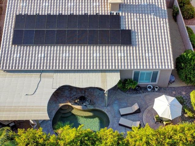 Welcome to 81597 Camino El Triunfo, a stunning El Dorado model in the desirable 55+ community of Sun City Shadow Hills. This beautifully maintained 2-bedroom, 2-bath plus den home offers an ideal blend of sophistication and desert comfort. The open-concept design features high ceilings, tile flooring, and large windows that fill the space with natural light. The gourmet kitchen includes granite countertops, stainless-steel appliances, a center island, and abundant cabinetry--perfect for entertaining. The spacious primary suite offers a luxurious bath with dual vanities, soaking tub, and walk-in closet. A versatile den provides a great space for an office or guest room. Step outside to a private backyard oasis with an extended covered patio, lush landscaping, BBQ island and tranquil sitting areas next to an inviting spool with waterfall -- ideal for relaxing or hosting friends. Enjoy resort-style living with two golf courses, fitness centers, clubhouses, pickleball, tennis, pools, and over 60 social clubs in one of the desert's premier active-adult communities. The upgrades to this property are too much to list. Please see the document folder for additional upgrade information. Call today at 760-574-2299 for showings. Use the link below for Sun City Shadow Hills development information. https://www.scshca.com