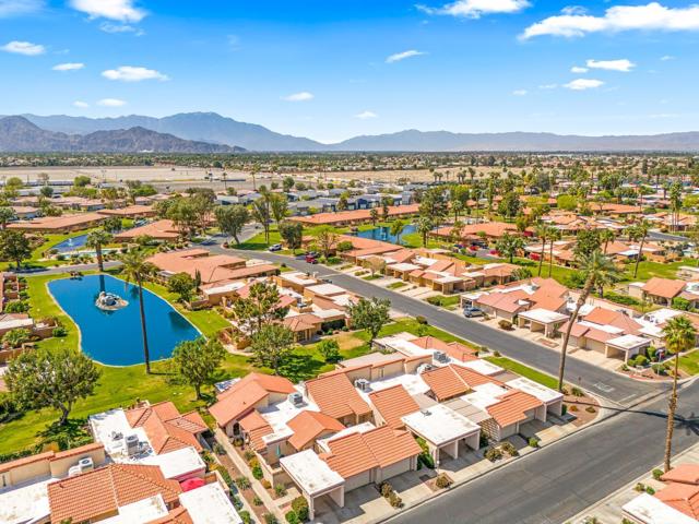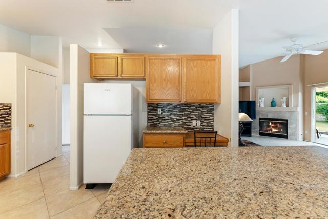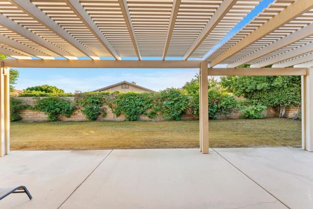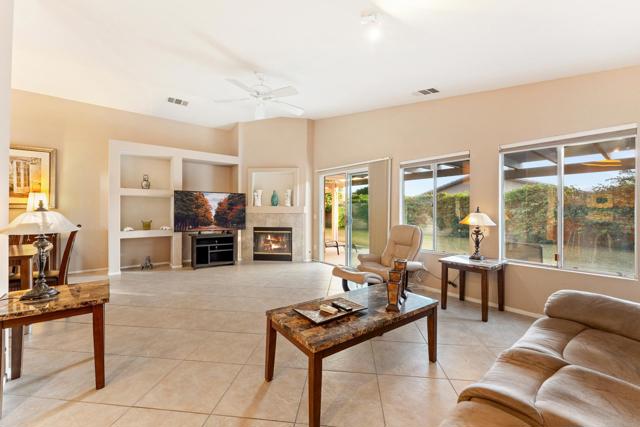 Welcome to this inviting 2 bedroom, 2 bath residence nestled within the sought after Indian Palms Country Club community. The home features an open layout with a well designed kitchen that includes an island, granite countertops, rich wooden cabinetry, and a stylish tile backsplash. Ceramic tile floors flow through the main living spaces, while the bedrooms offer soft carpeting for comfort. The living room is both spacious and cozy, highlighted by a fireplace, built-in shelving, and large double sliding glass doors that fill the space with natural light and provide easy access to the backyard. The master bedroom also opens to the outdoor area, creating a seamless connection between indoor and outdoor living. Both bathrooms feature tile floors, white tile showers, coordinating cabinetry, and bright countertops that complement the home's clean aesthetic. Out back, enjoy a generous covered wooden patio overlooking a lush grassy yard surrounded by brick walls and bushes for added privacy. Indian Palms Country Club offers outstanding amenities including a public golf course, clubhouse, and restaurant. Conveniently located near the Empire Polo Grounds, this home places you minutes away from the excitement of the Coachella and Stagecoach music festivals. Schedule your appointment today!