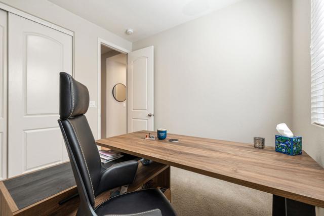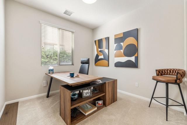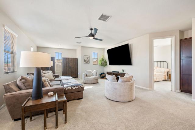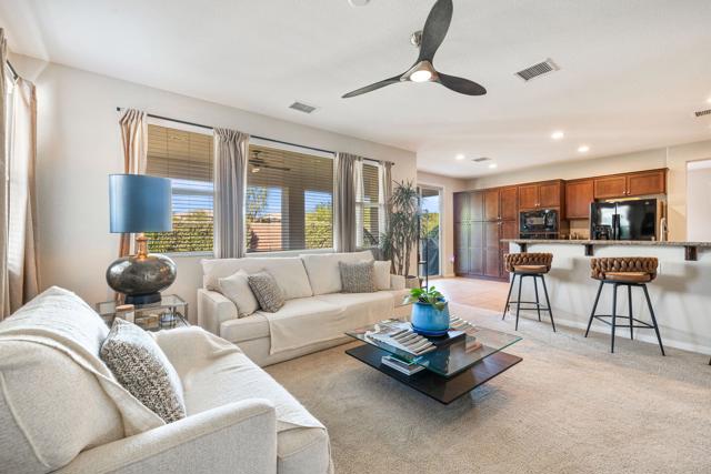Welcome to this spacious 5-bedroom, 2-story home offering comfort, functionality, and style throughout. The thoughtful floor plan features a convenient first-floor bedroom, a formal dining room, and a versatile den ideal for an office or playroom. The kitchen includes ample cabinetry, granite countertops, and a charming breakfast nook with direct access to the backyard. Upstairs, a large loft provides additional living space, while the primary suite serves as a private retreat with dual vanities, a makeup vanity, a soaking tub, and a separate shower. Outside, enjoy the covered patio surrounded by lush landscaping and the added privacy of backing to a peaceful greenbelt--creating the perfect setting for relaxation and entertaining. Located in the 55+ community of Trilogy Polo Club.